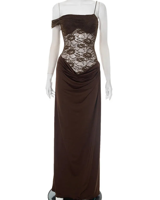 Patchwork Off-The-Shoulder Halter Maxi Dress – Elegant Party Swing