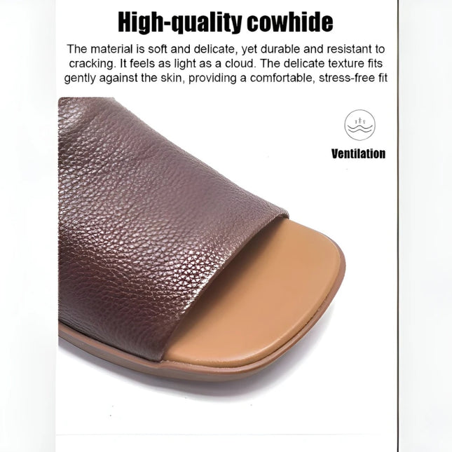 Genuine Leather Square Toe Summer Slides