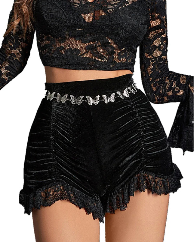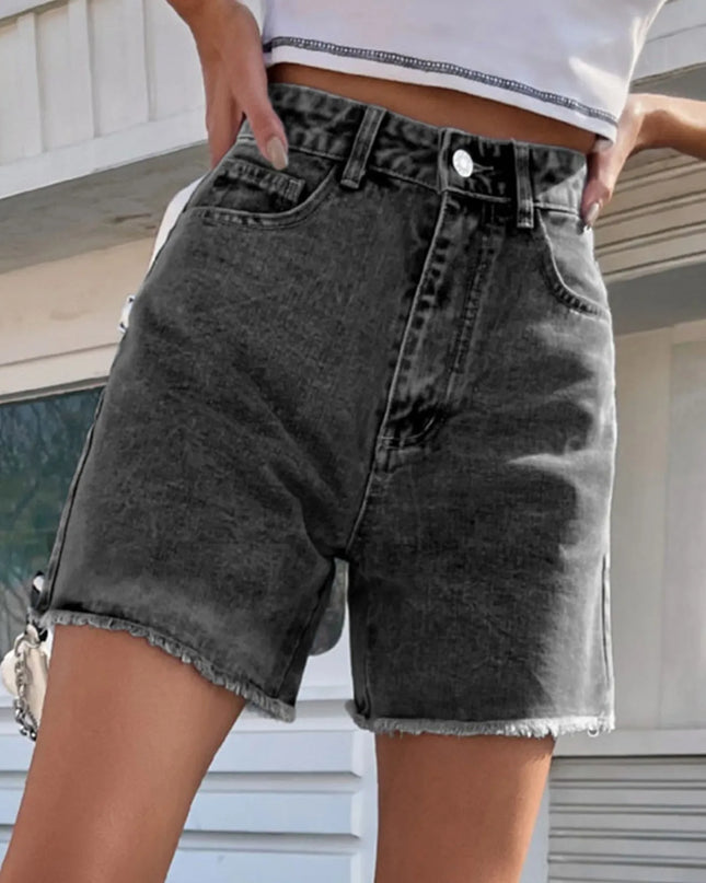 Black High-Waist Elastic Denim Shorts – Summer Casual for Women