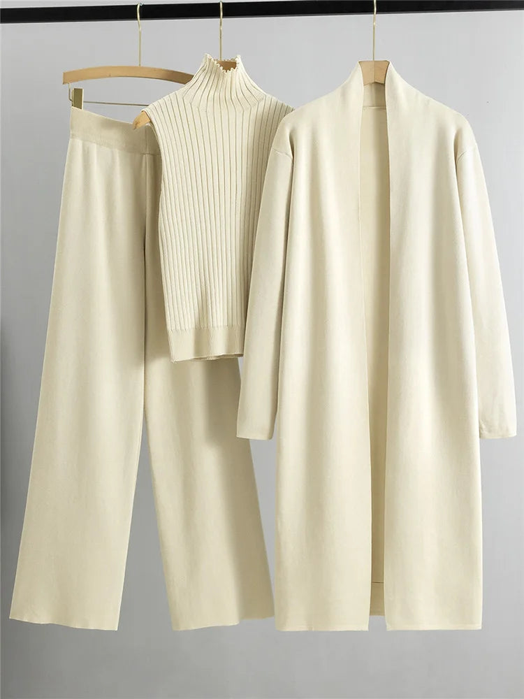 Aggiorna il tuo guardaroba stagionale con questo elegante completo a maglia a 3 pezzi — composto da un gilet dolcevita senza maniche, un cardigan lungo aperto sul davanti e pantaloni a maglia rilassati. Progettato per il comfort, la flessibilità nel layering e la sofisticatezza quotidiana, questo set combina uno stile alla moda con il comfort traspirante della maglia. È perfetto per la primavera, l'autunno e le serate estive più fresche, offrendo molteplici possibilità di outfit in un solo ensemble. I completi in maglia come questo stanno diventando sempre più popolari grazie alla loro versatilità e alla facile coordinazione con look casual o più eleganti. I completi in maglia a 3 pezzi dei concorrenti dimostrano che gli acquirenti apprezzano pezzi coordinati che funzionano insieme o separatamente, rendendo questo set un investimento intelligente nella moda.