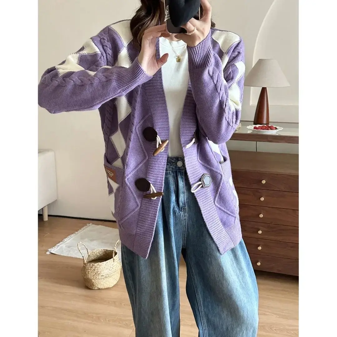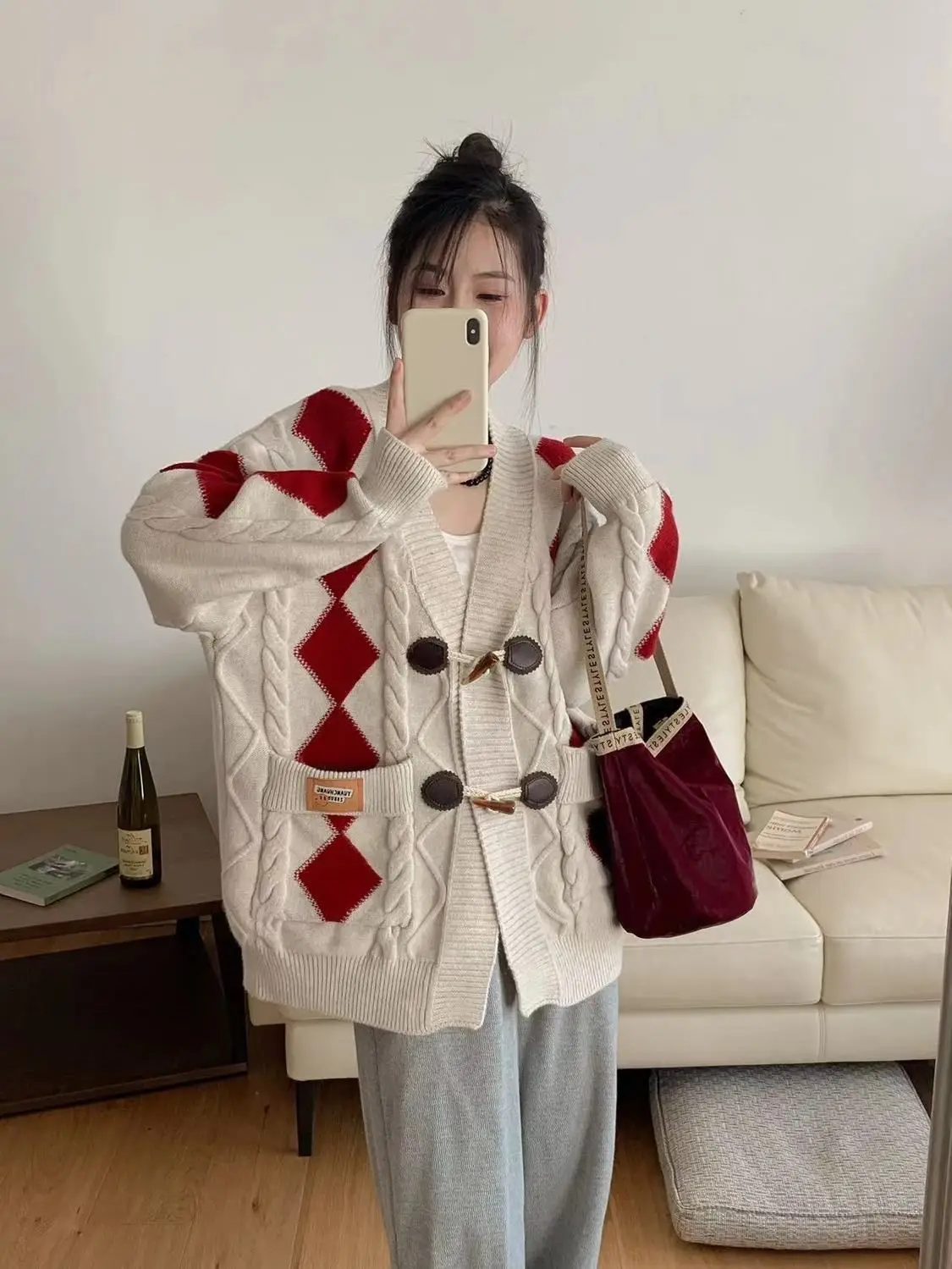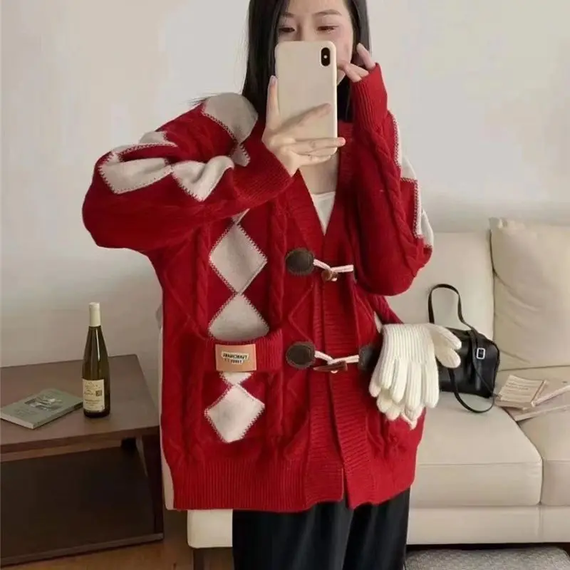 Stile versatile: Questo cardigan lavorato a maglia presenta uno stile chic e versatile, perfetto per autunno e inverno, che unisce un'atmosfera college a un taglio ampio e di media lunghezza.
