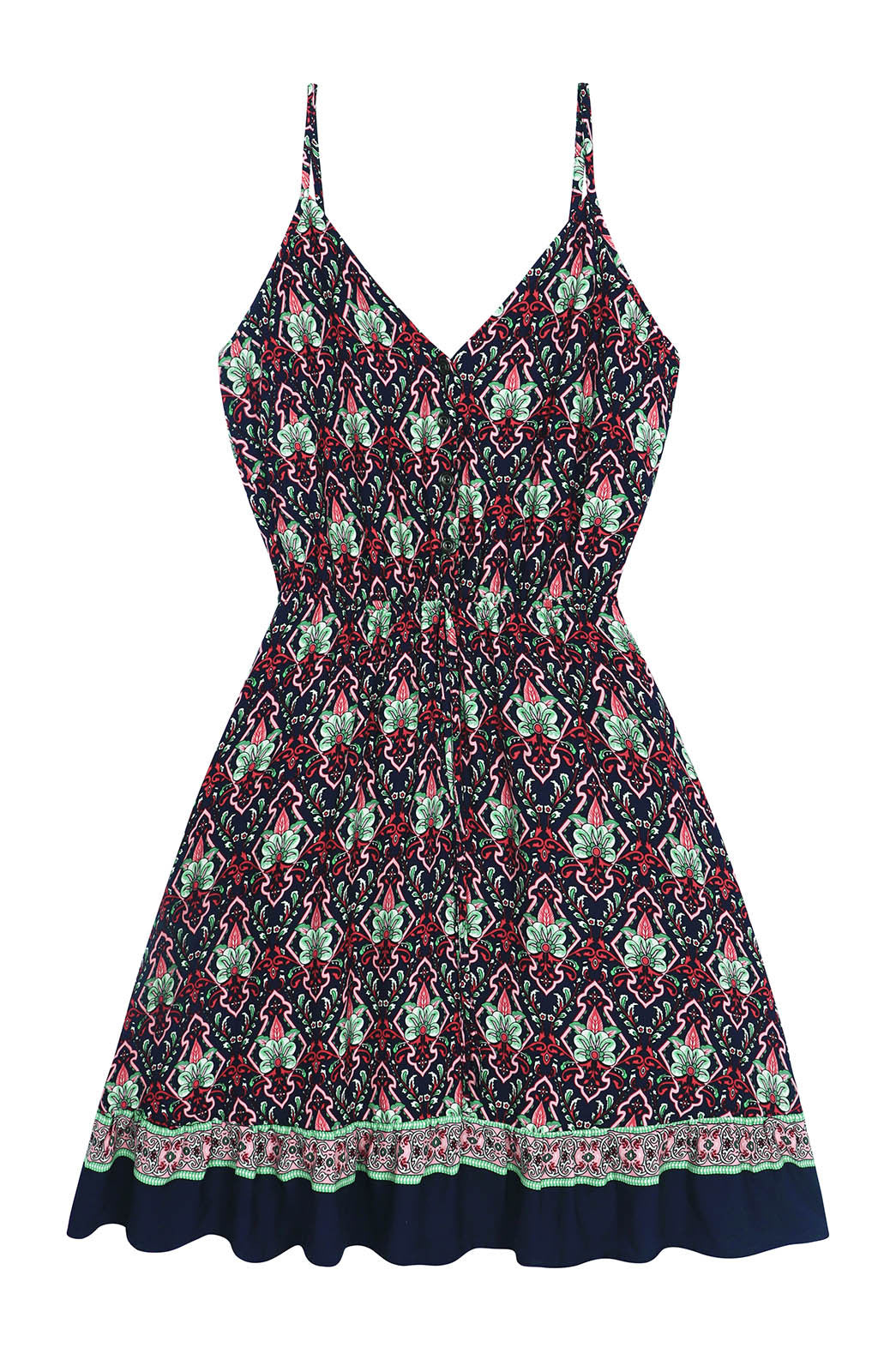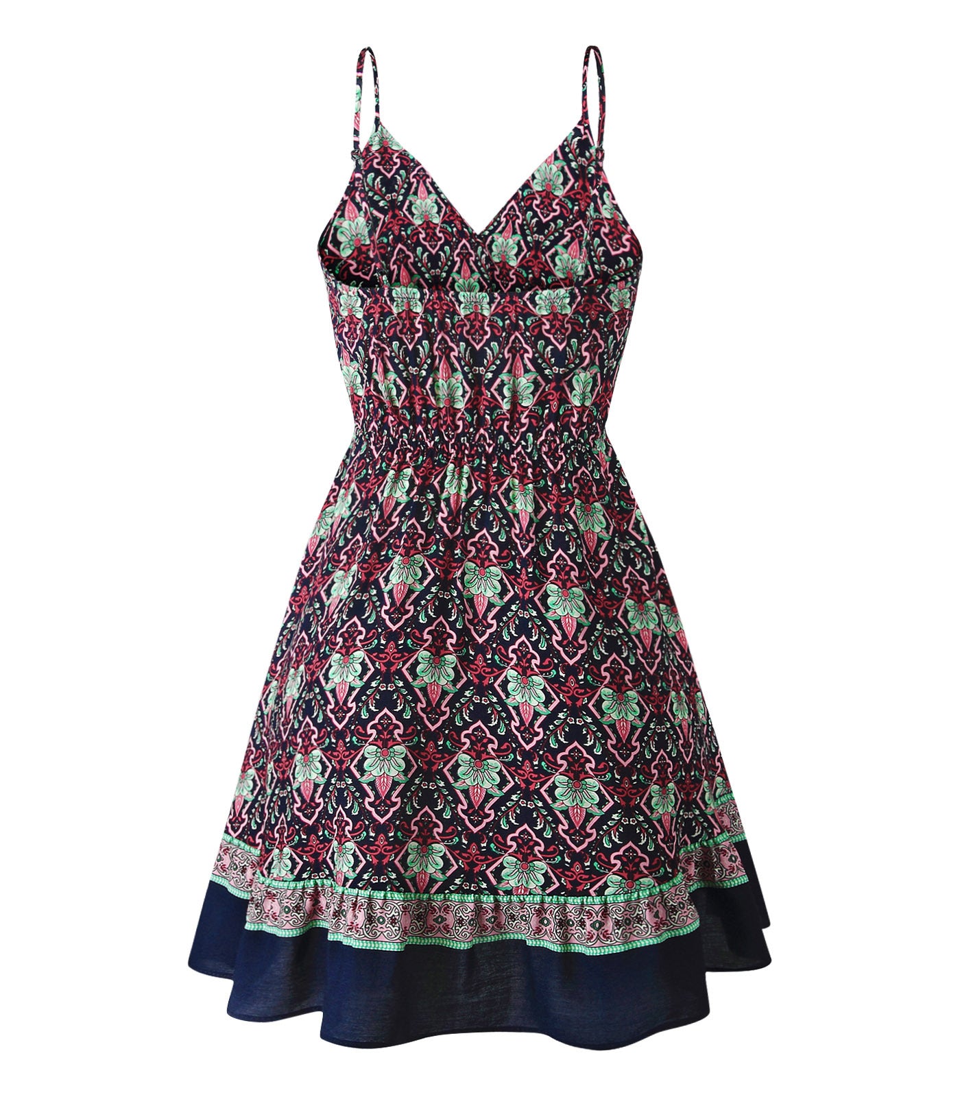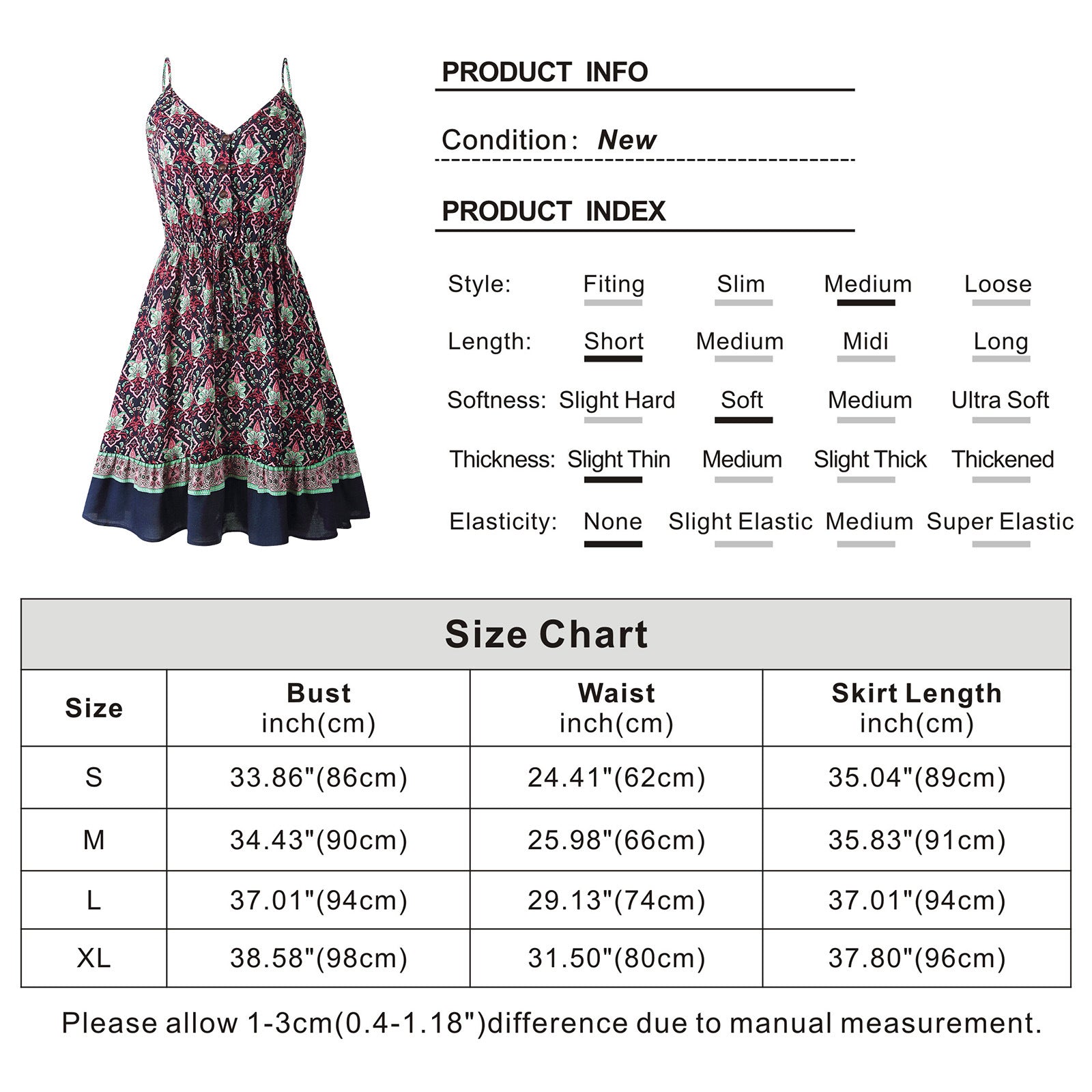 Fit / Style: Short dress; relaxed fit through bodice with defined waist or halter support; flattering for many body types