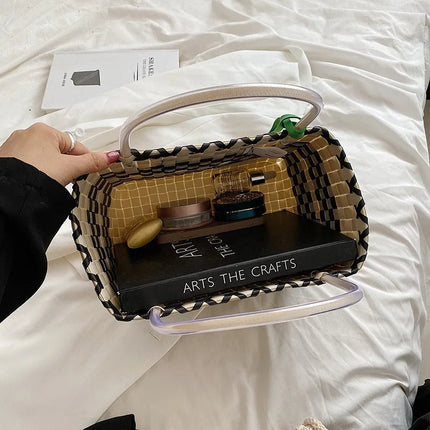 Bohemian Checkered Straw Tote – Large Capacity Summer Beach HandBag