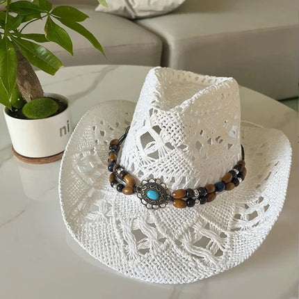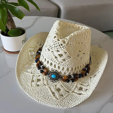 Bohemian Straw Cowboy Sun Hat – Wooden Beads