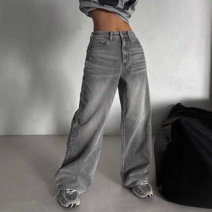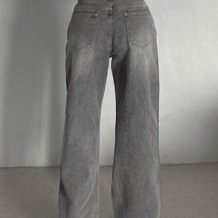 Cement Grey High-Waisted Straight Leg Jeans – Slimming Narrow Retro Fit