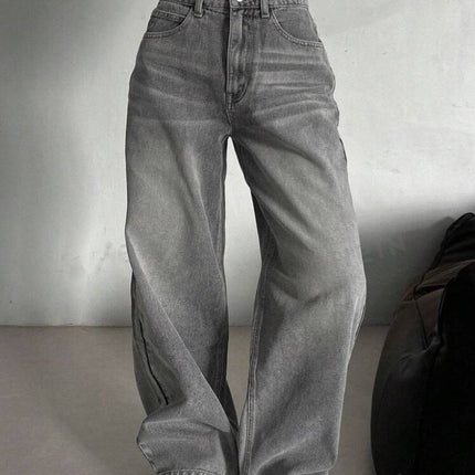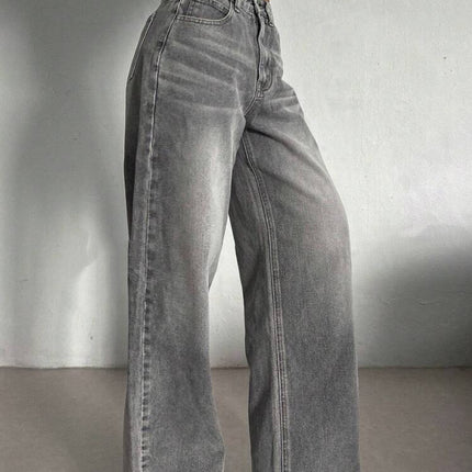Step into a pair of jeans that marry vintage charm with contemporary comfort. These Cement Grey High-Waisted Straight Leg Jeans are designed to deliver a slimming silhouette with a relaxed straight leg, bringing out an effortlessly chic look. Their muted cement grey wash gives you a stylish neutral that pairs well with almost any top, while the high rise cinches in the waist for flattering shape. Soft stretch denim ensures you won’t feel restricted — perfect for everyday wear through spring, autumn, or layering into winter.