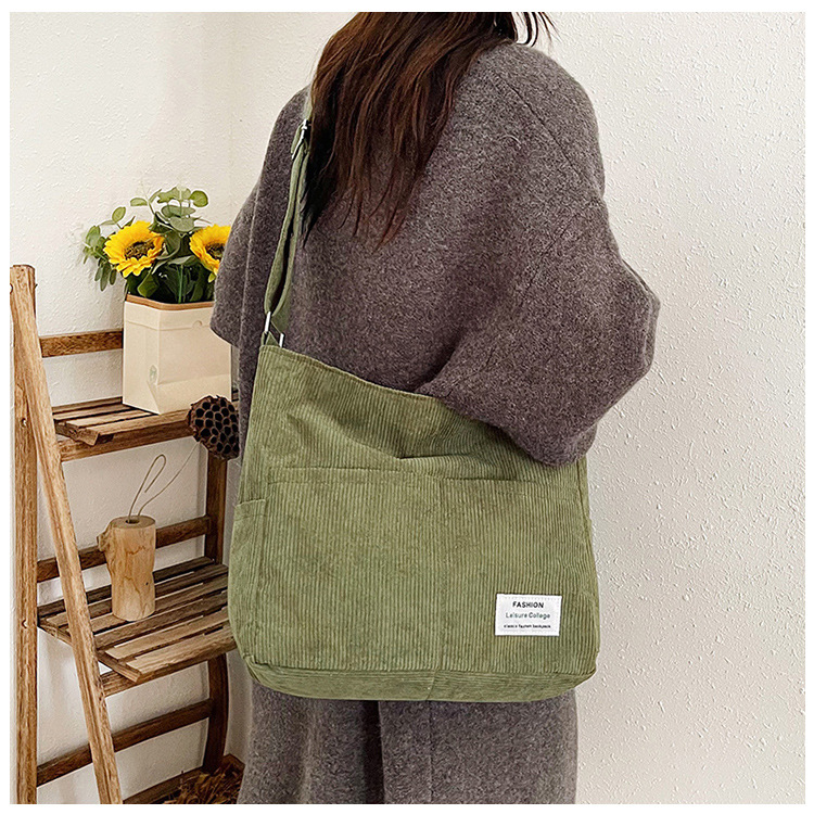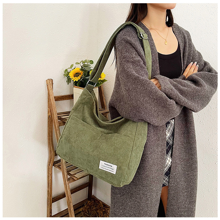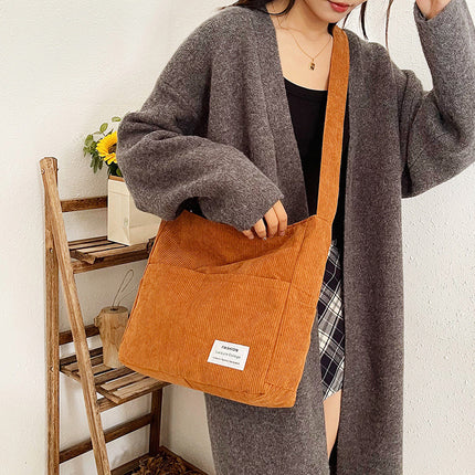 Cross-border corduroy fabric bag women Corduroy Shoulder – Large-Capacity