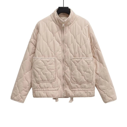 Elevate your cool-weather outfits with this double-sided short jacket—luxuriously padded with soft cotton, adorned with diamond-style bead embellishments, and designed with a raised collar for both style and comfort. Crafted for transitional autumn and winter days, its reversible versatility makes it ideal for office commutes and weekend layers alike.