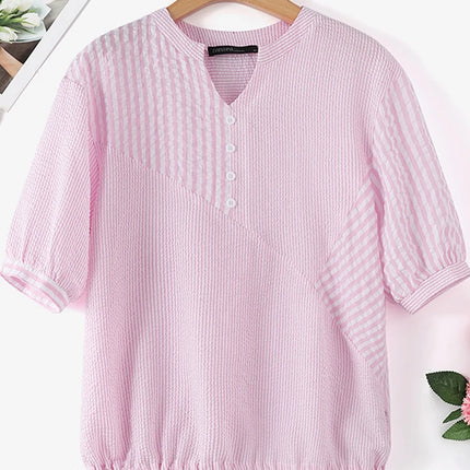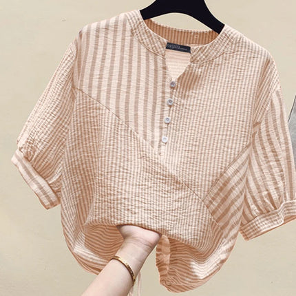 Elevate your everyday look with this Elegant Striped V-Neck Blouse, designed for comfort, confidence, and refined summer style.