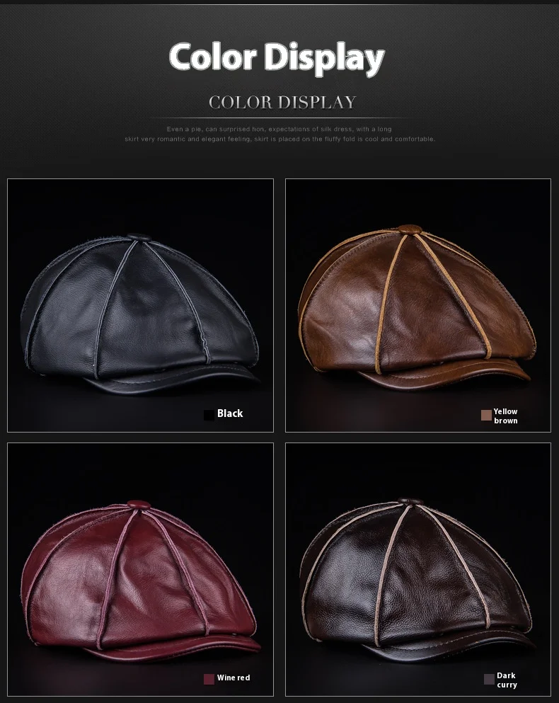 Genuine Cowhide Leather Octagonal Cap – Warm & Adjustable Men’s Style