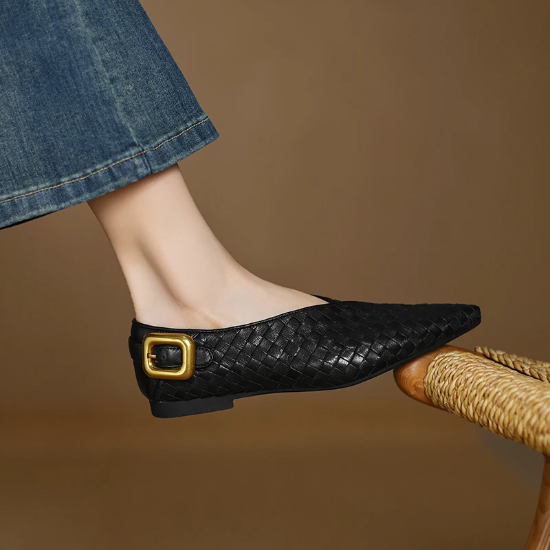 Style / toe shape: Pointed toe flat / loafer hybrid