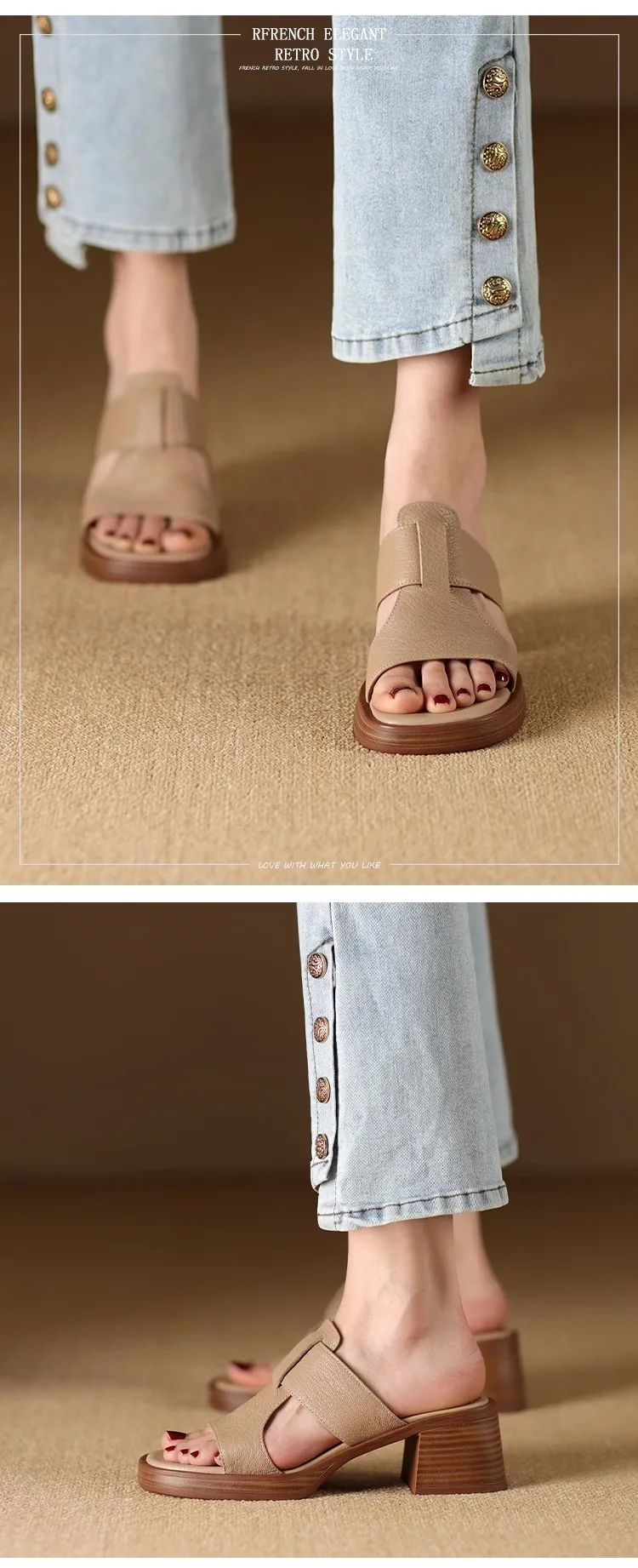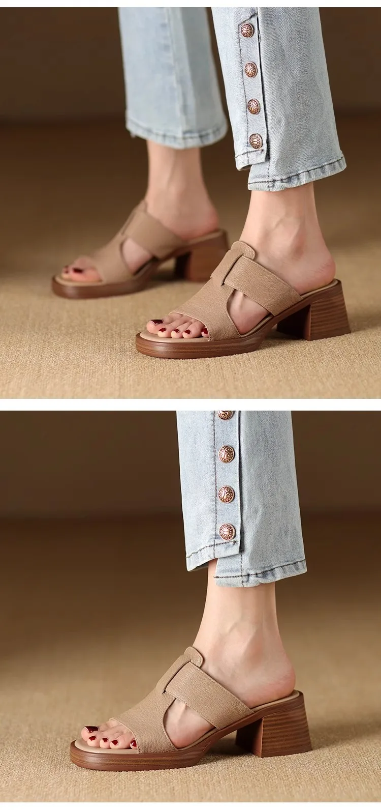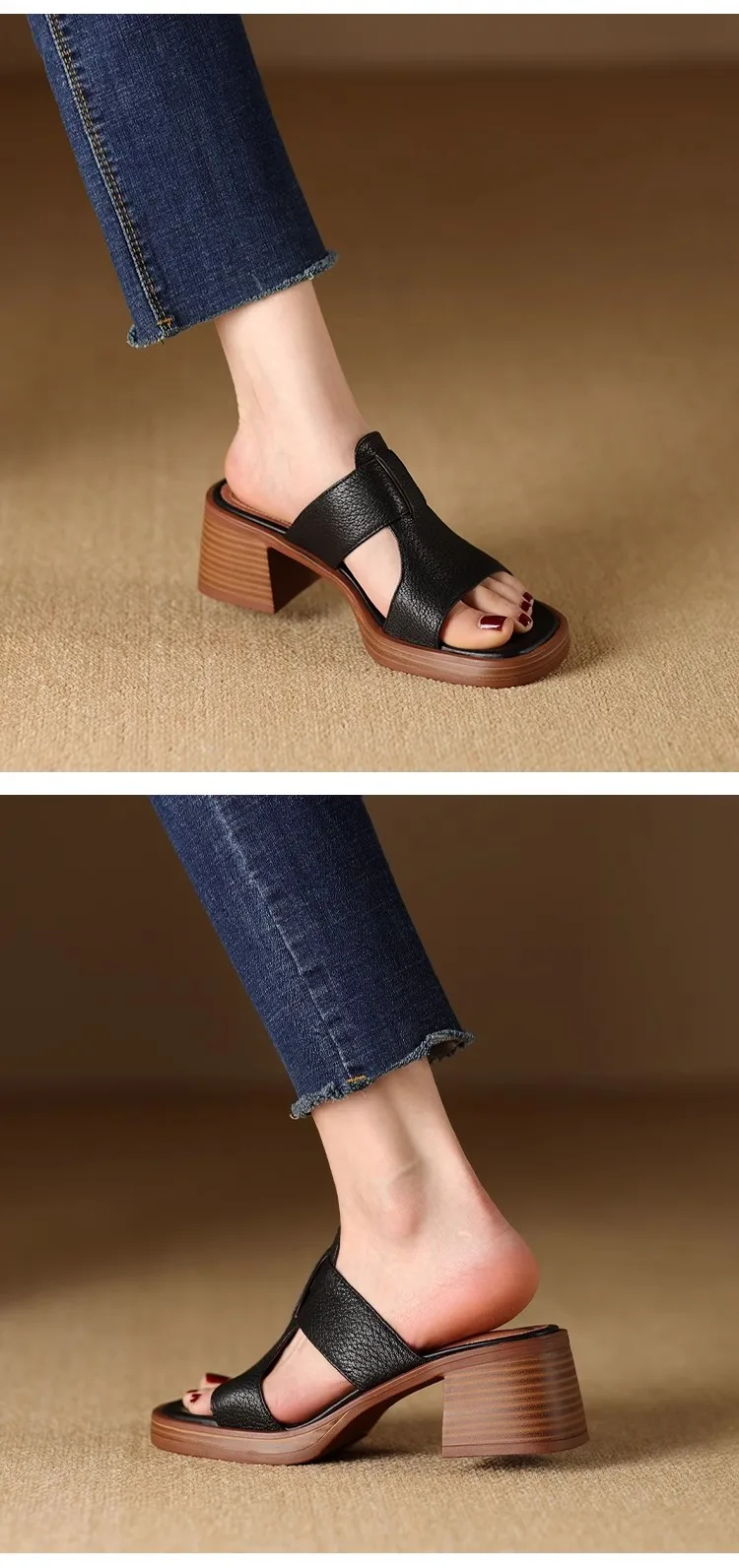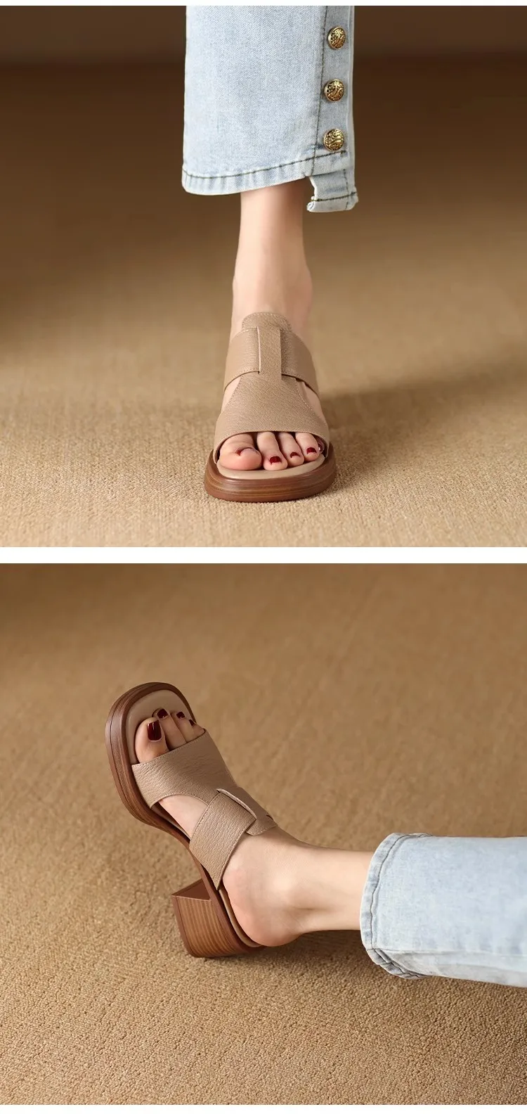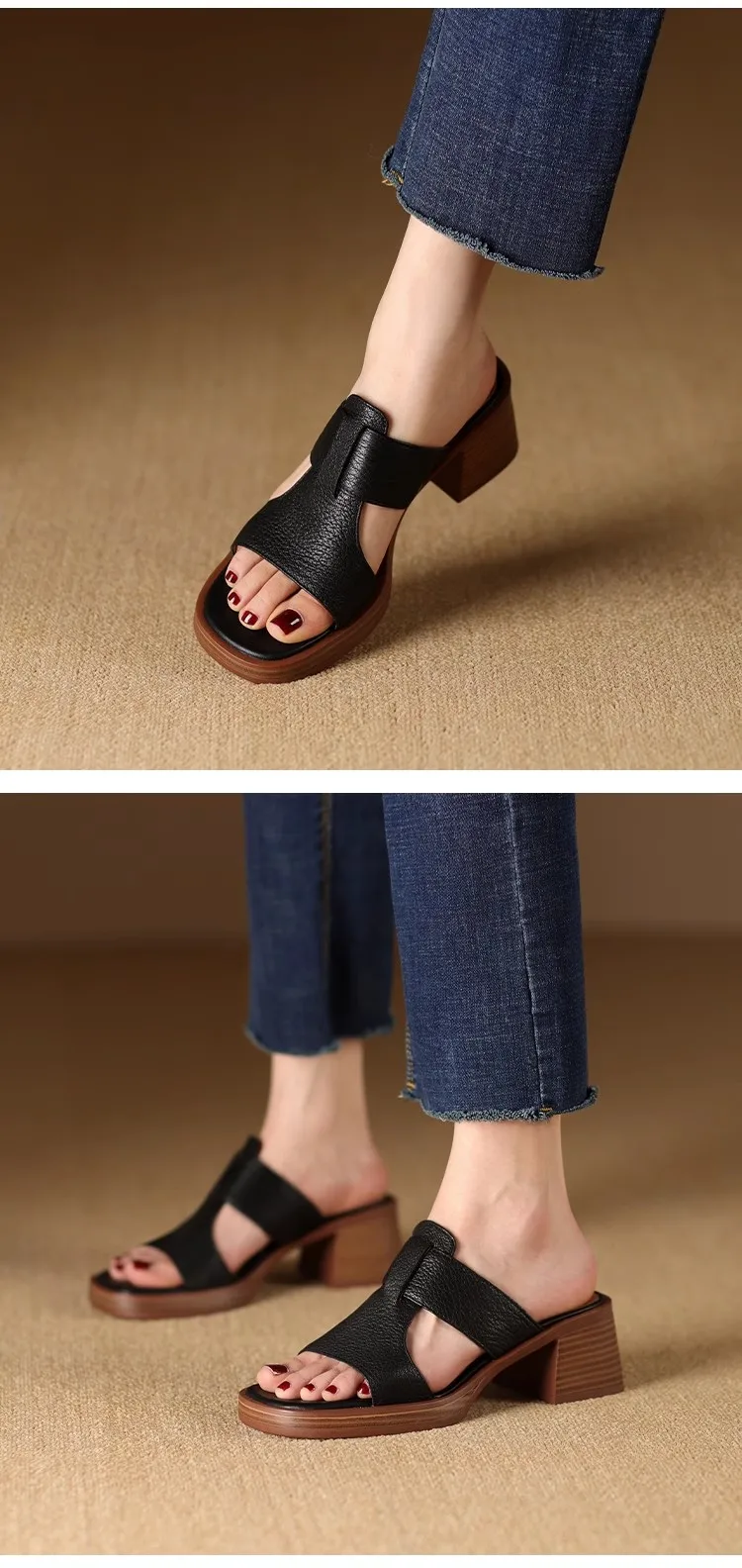 Handmade Vintage Square-Toe Tuck-Strap Sandals