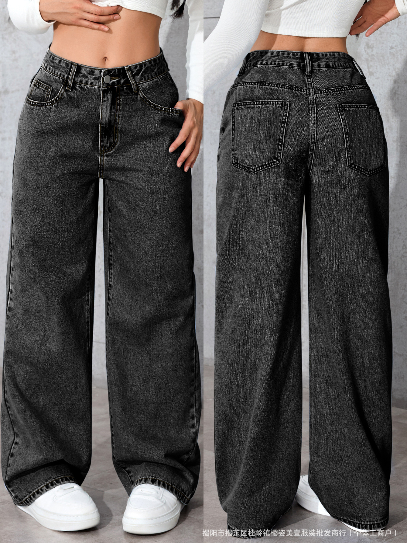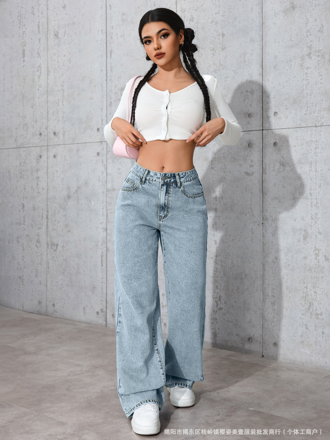 | Style / Cut | High waist; straight leg; casual-loose long pants; “sweet & spicy” finish (styled fashionably casual) |