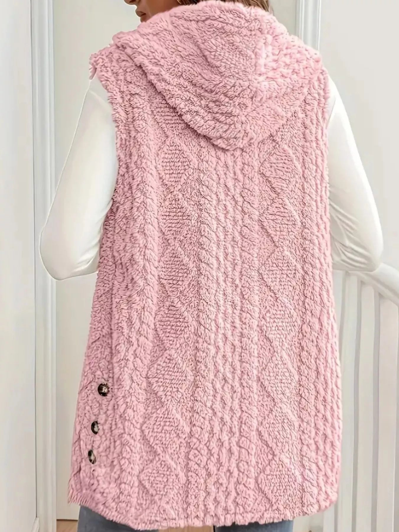 Hooded Sherpa Button‑Up Vest Coat
