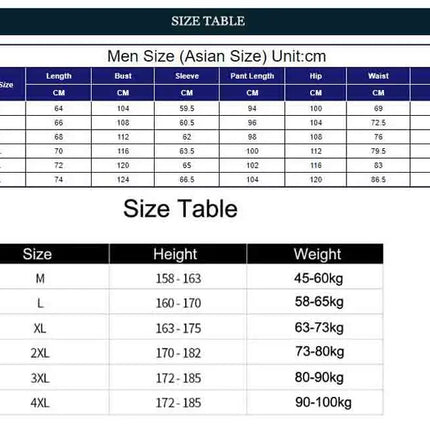 Men Size (Asian Size) Unit:cm |