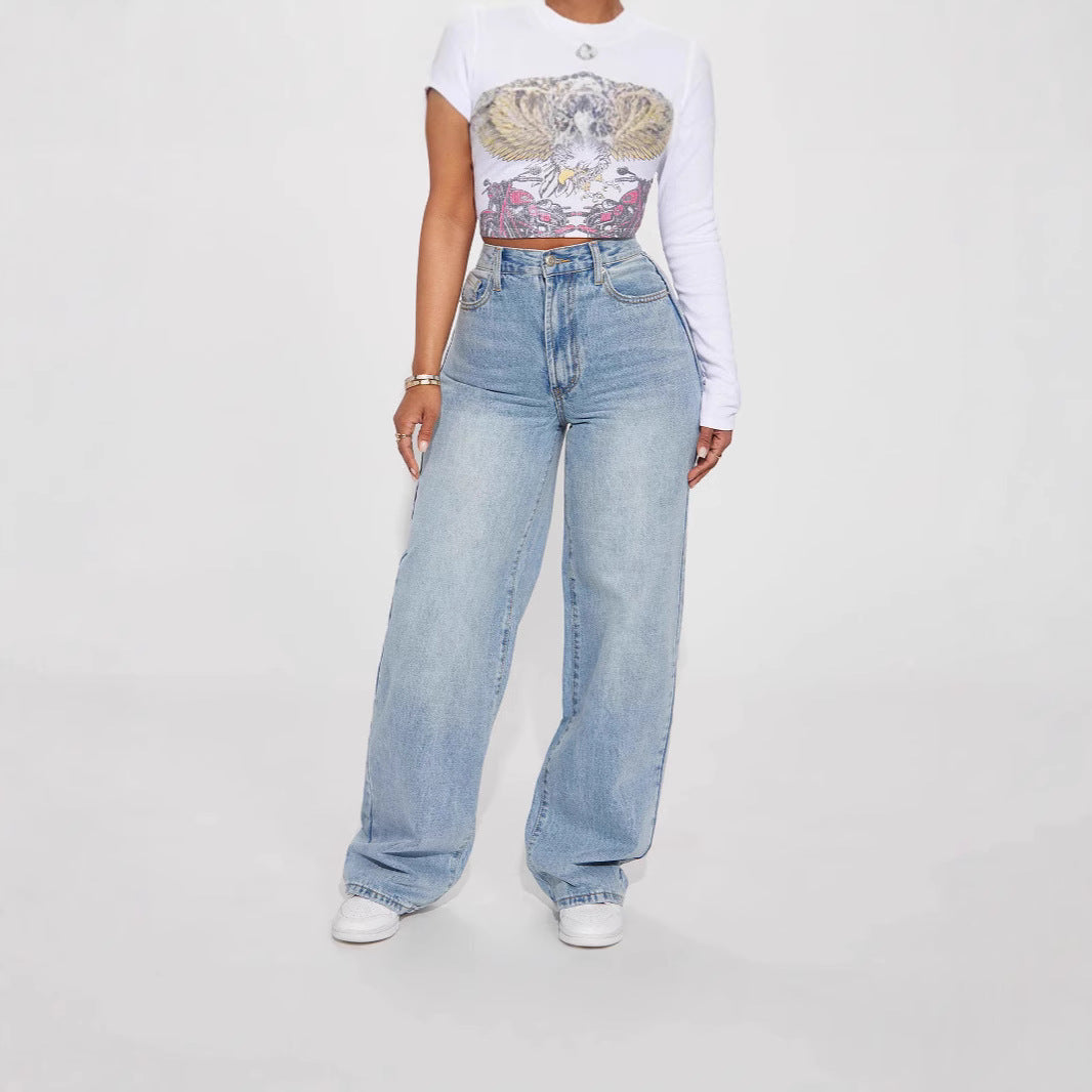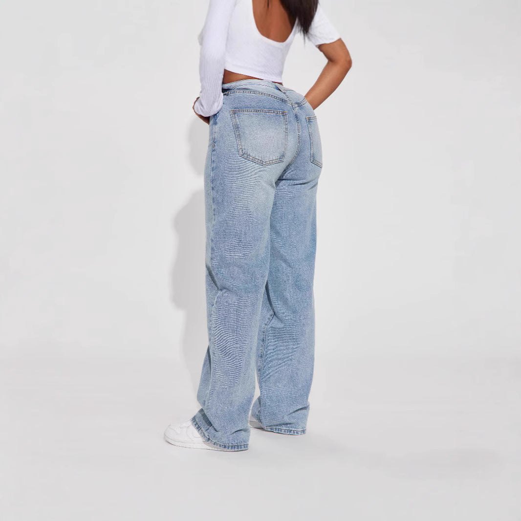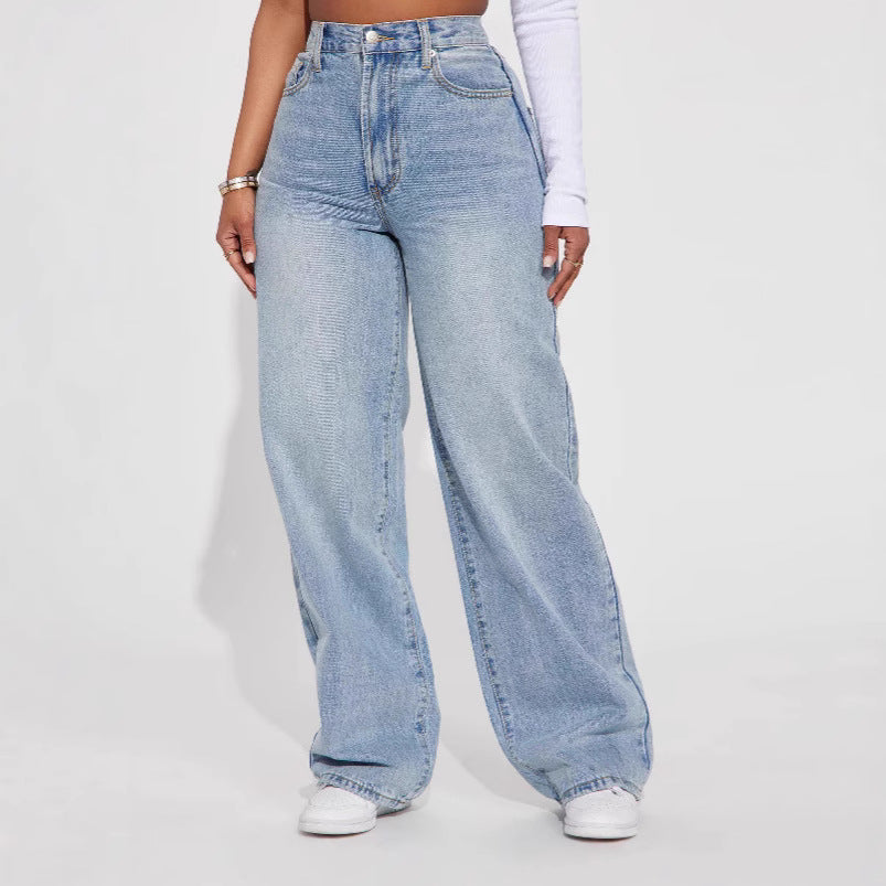 Elevate Your Denim Game with Light-Wash High-Rise Straight Denim