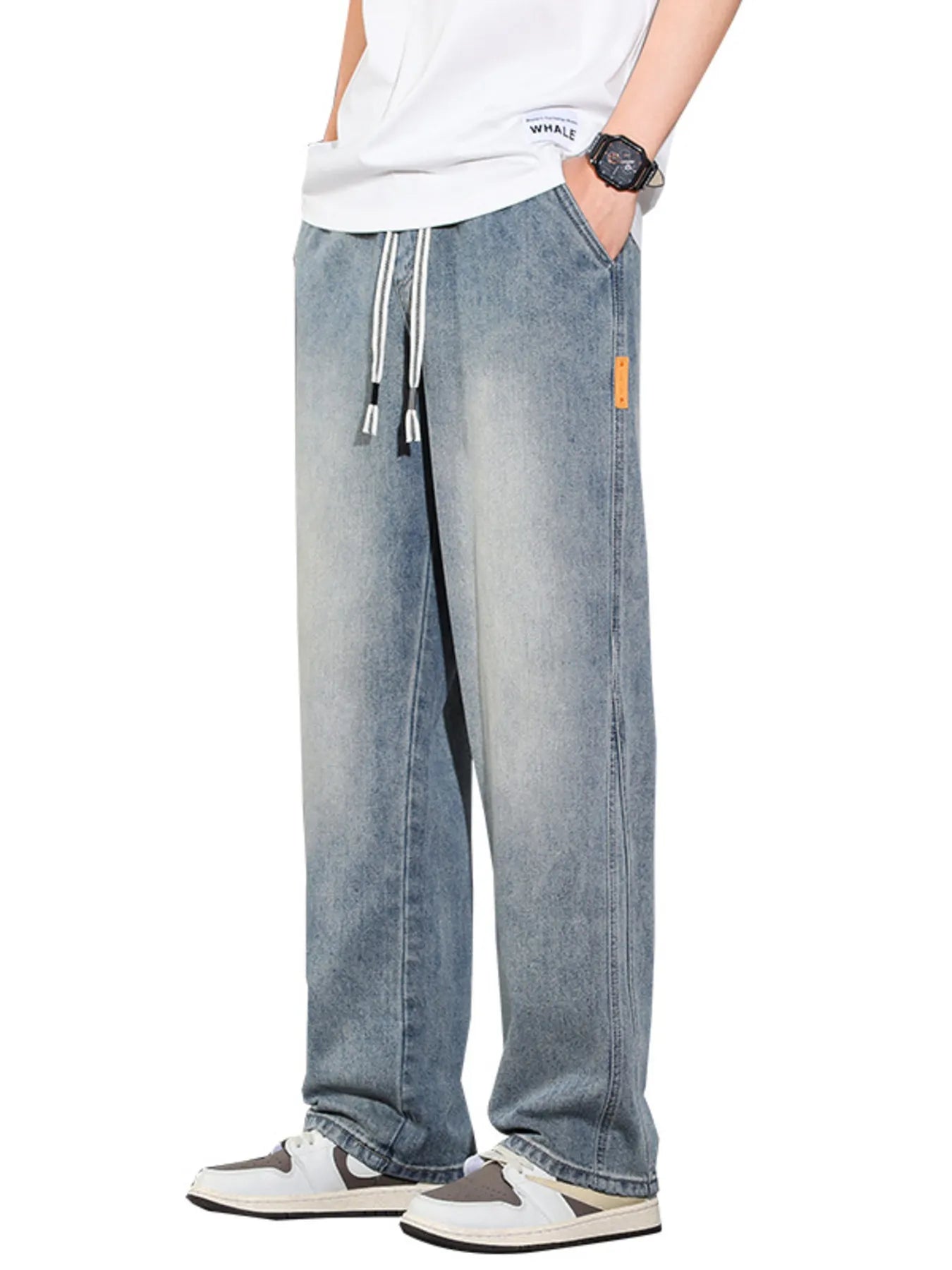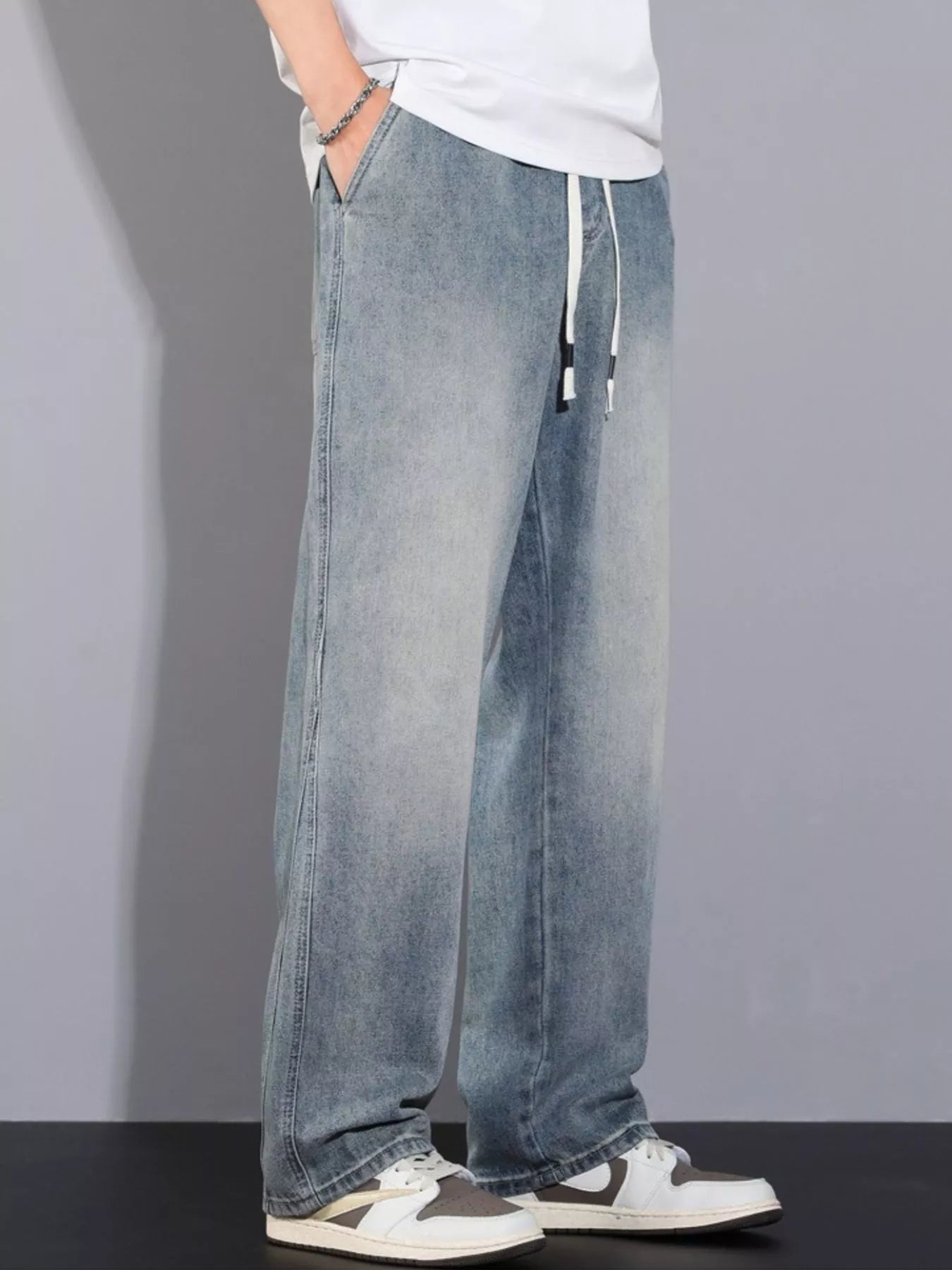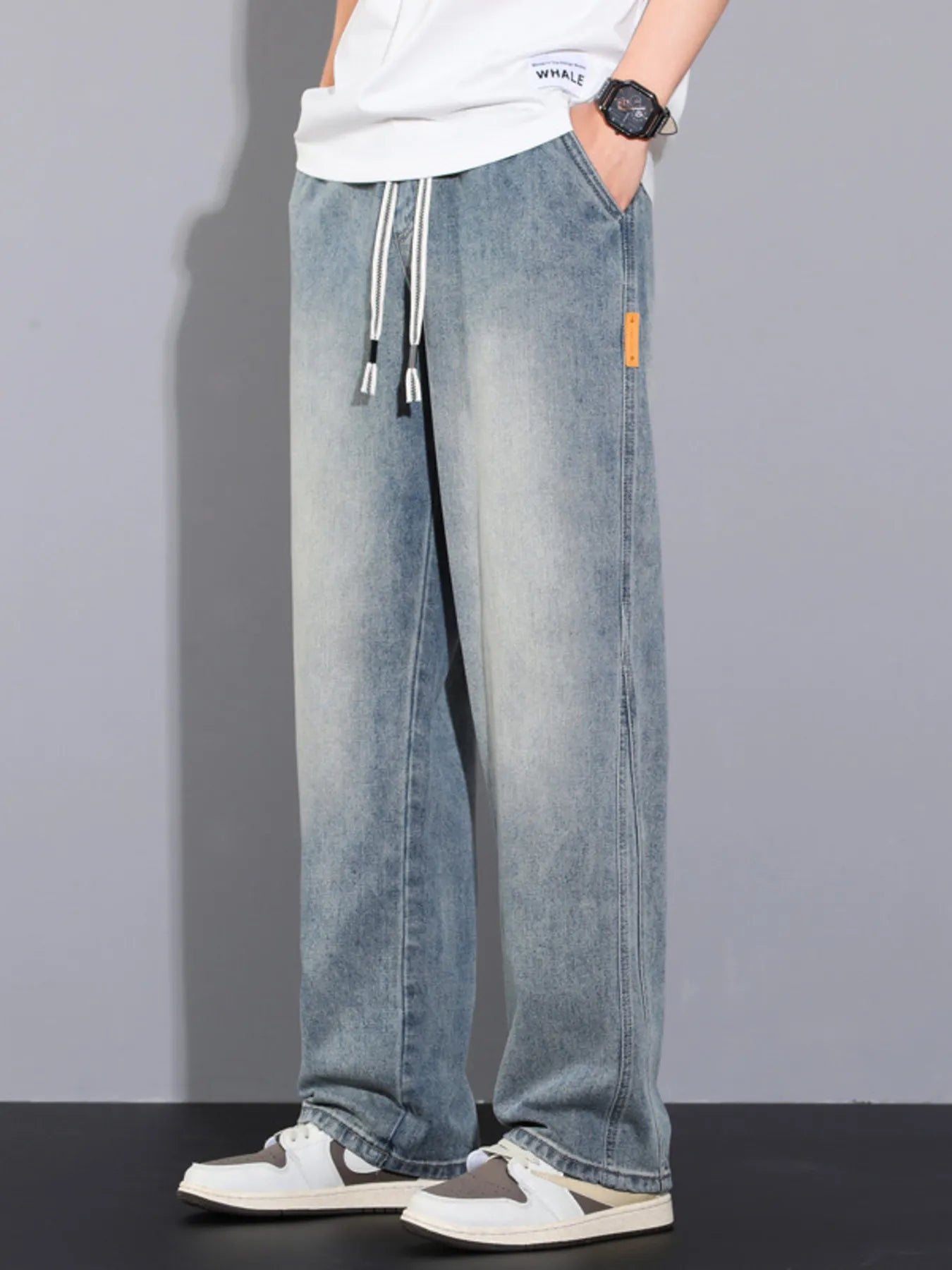 “Loose Fit Drawstring Waist Denim Jeans