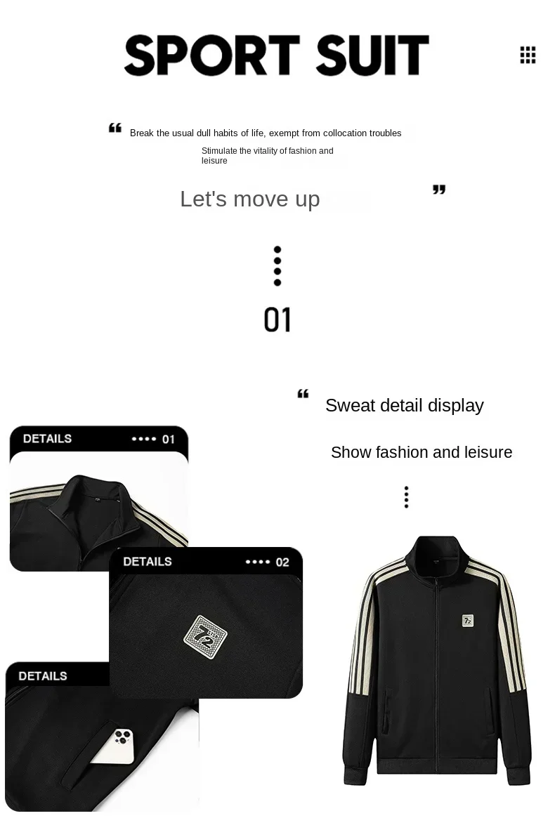 Elevate your workout and everyday style with this breathable 2-piece sports set for men, perfect for spring and autumn. Featuring a lightweight sports jacket paired with matching joggers, this set is designed to keep you cool and dry during fitness sessions or casual outings. Stretchy enough for movement, structured enough for style, it blends performance fabric with fashion sensibilities. Ideal for fitness, outdoors, gym sessions or relaxed wear, its versatile design ensures both utility and comfort.