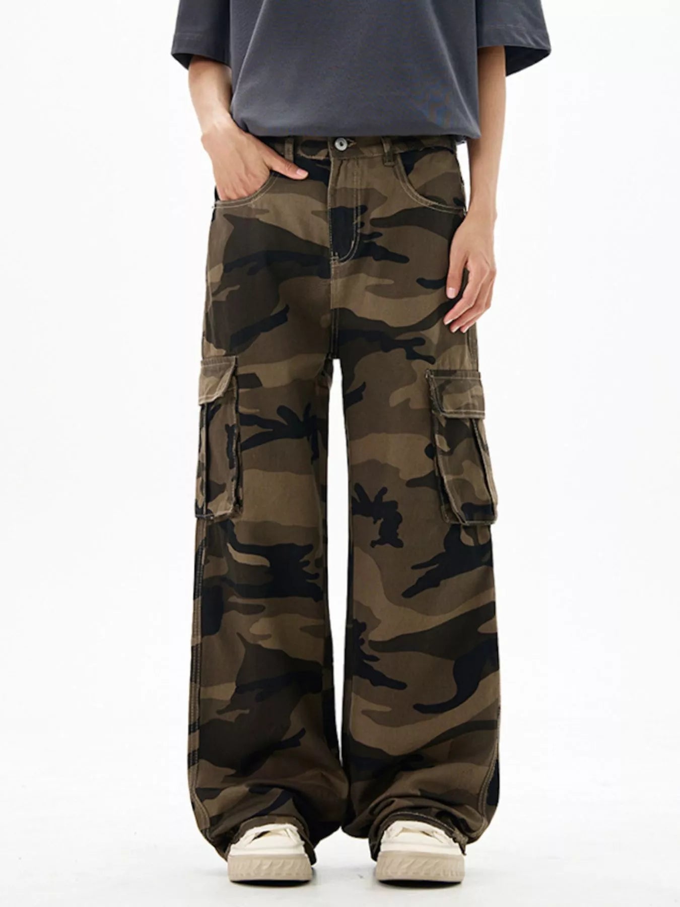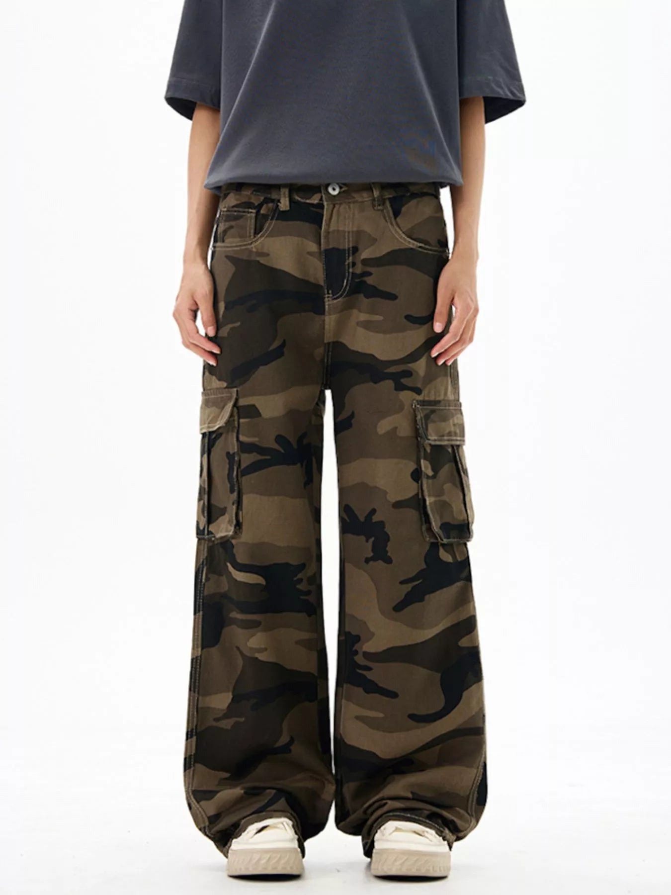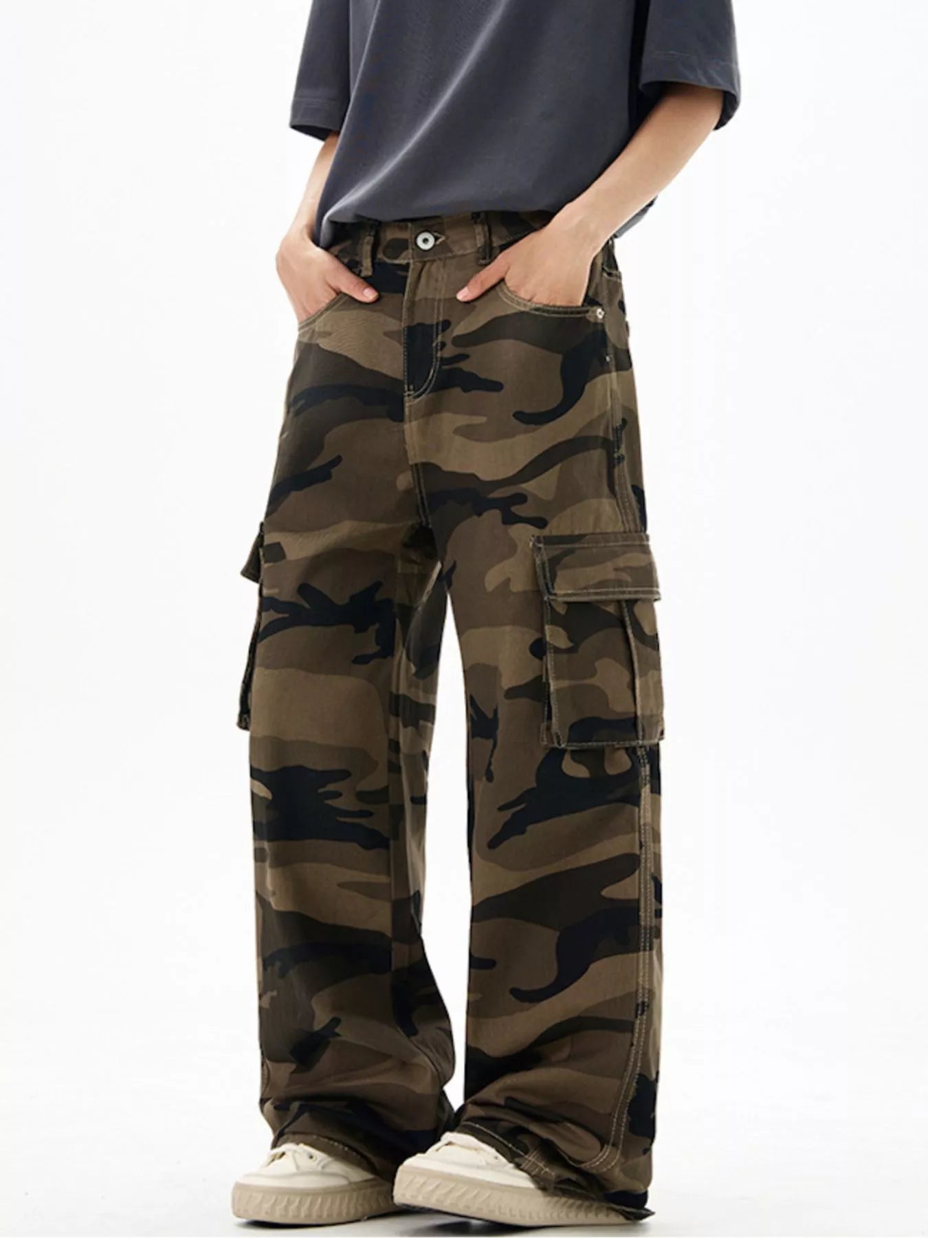 Men’s Camo Print Wide‑Leg Cargo Pant