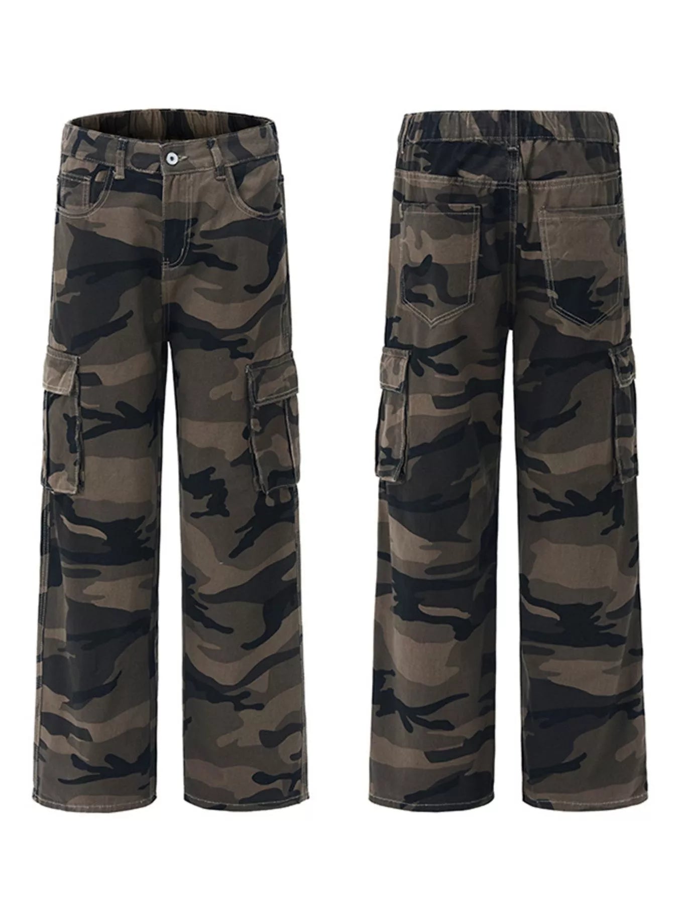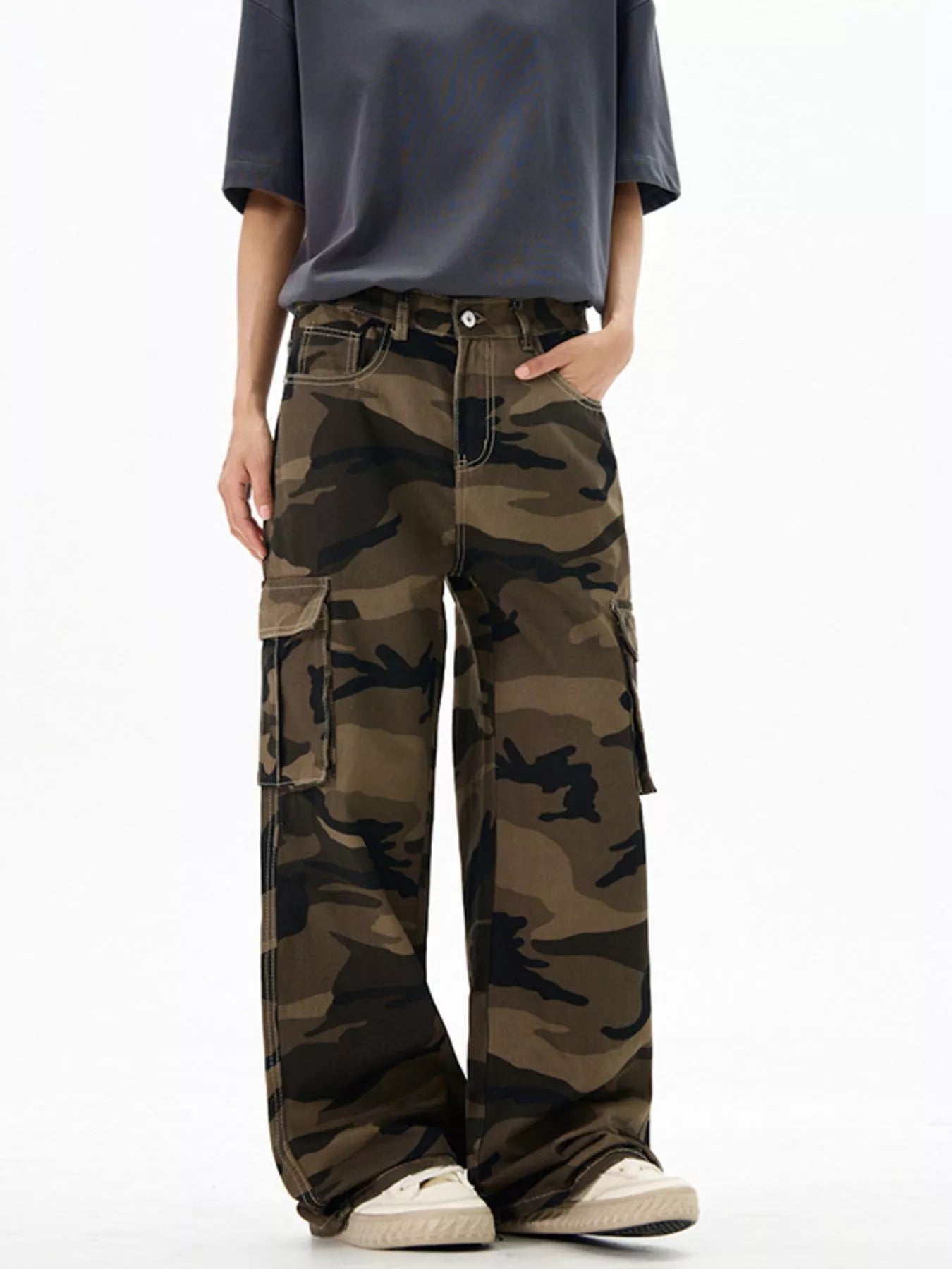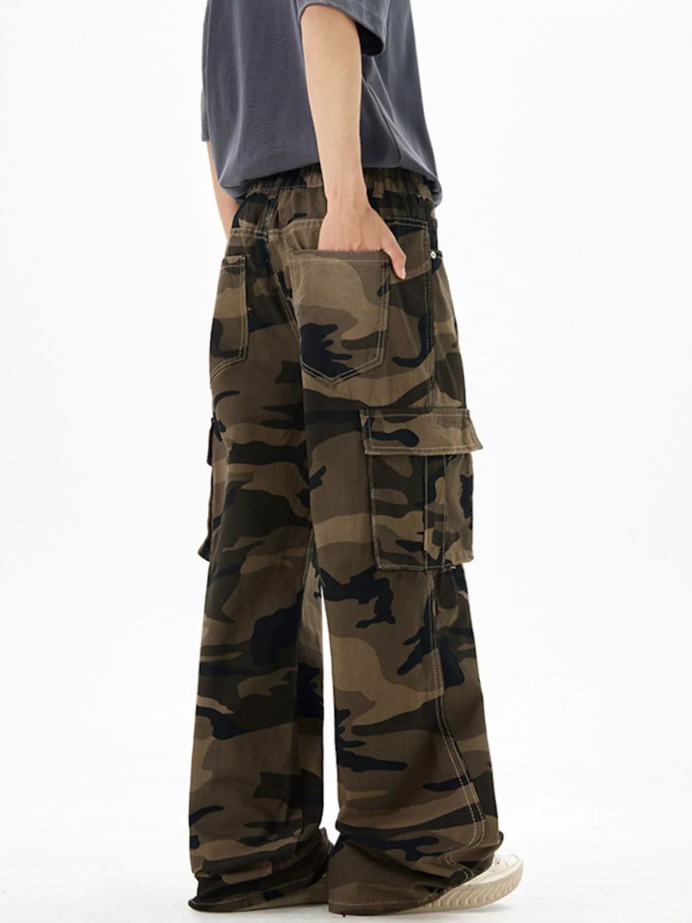 Men’s Camo Print Wide‑Leg Cargo Pant