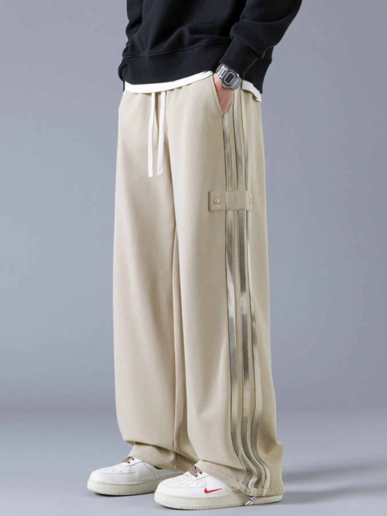 Upgrade your everyday wardrobe with these Men’s Loose Casual Pants with Side Stripe — combining comfort, modern streetwear vibes and functional design. Designed for a relaxed fit, these pants offer freedom of movement whether you’re running errands, heading out with friends or relaxing at home. The subtle side stripe adds a sporty-casual accent that pairs effortlessly with hoodies, tees or jackets. Durable yet lightweight, they are ideal for year-round casual wear.