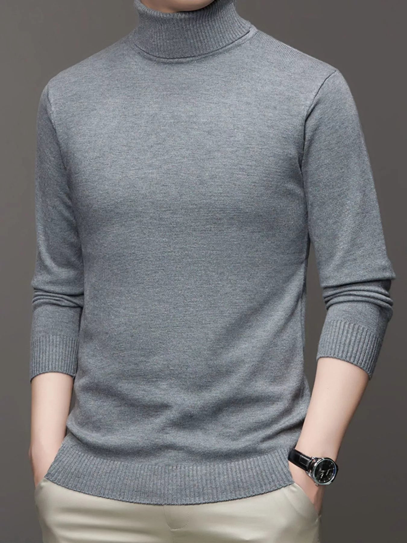 Men’s Plus‑Size Turtleneck Slim‑Fit Sweater