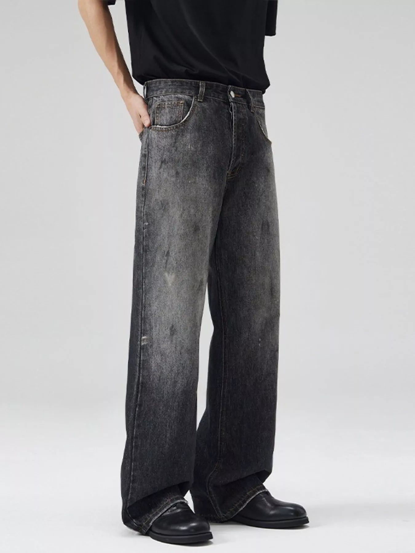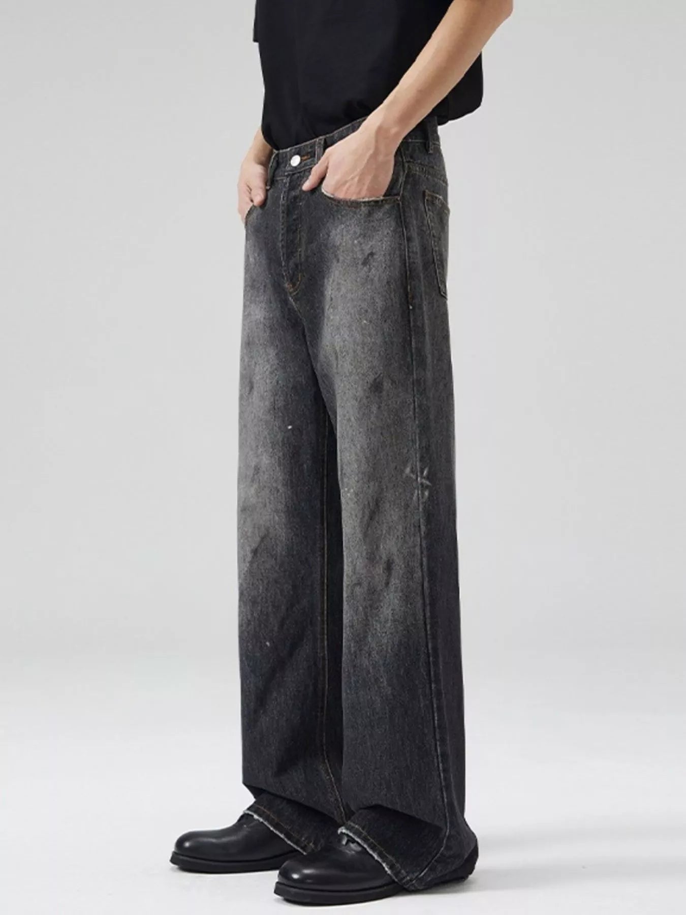 Men’s Plus‑Size Vintage‑Wash Wide‑Leg Jeans