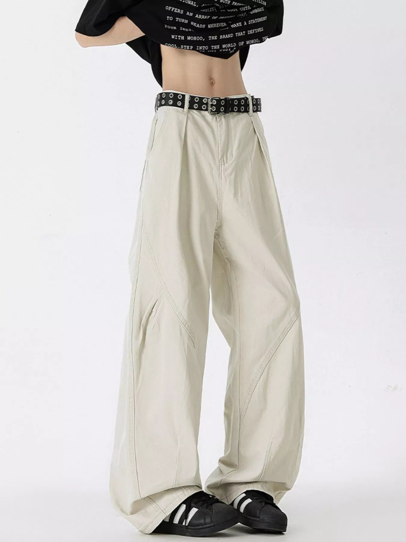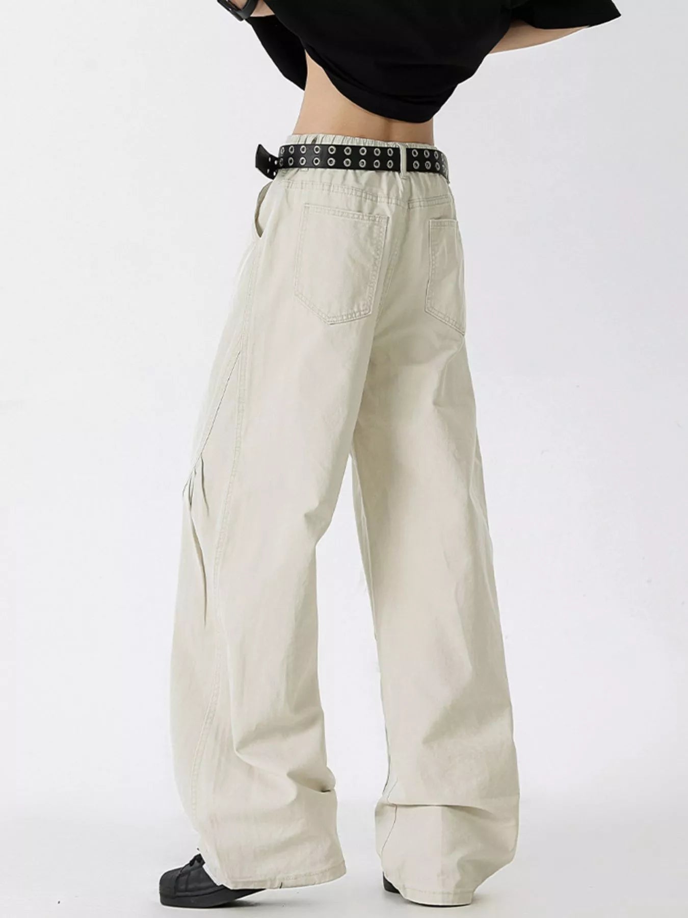 Wide-leg cut: looser through the thighs, falling straight to the hem