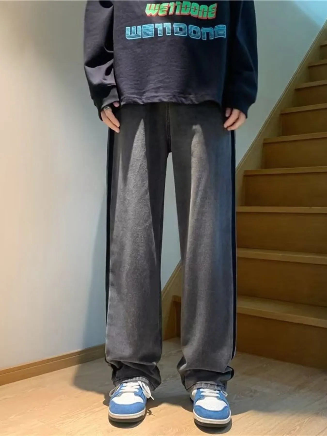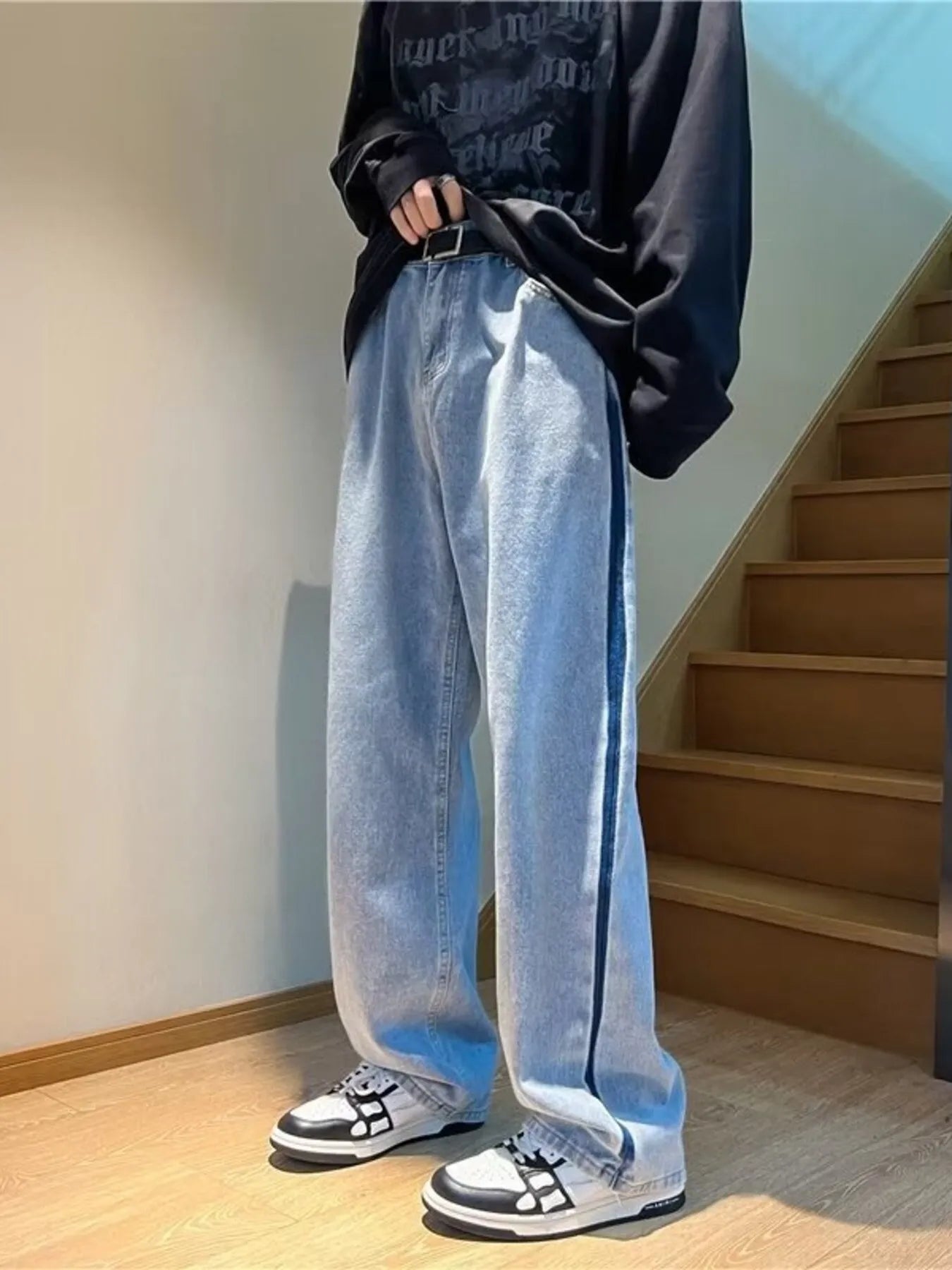 Men’s Side‑Stripe Baggy Jeans
