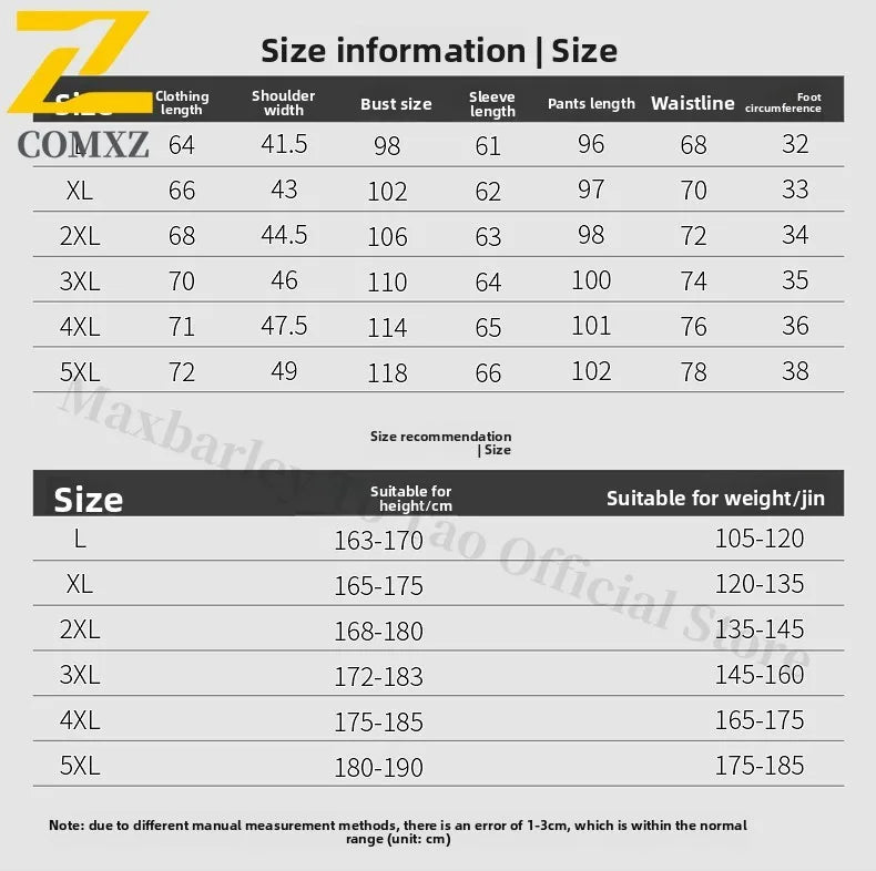 | Size (EU) | Clothing Length | Shoulder Width | Bust Size | Sleeve Length | Pants Length | Waistline | Foot Circumference |