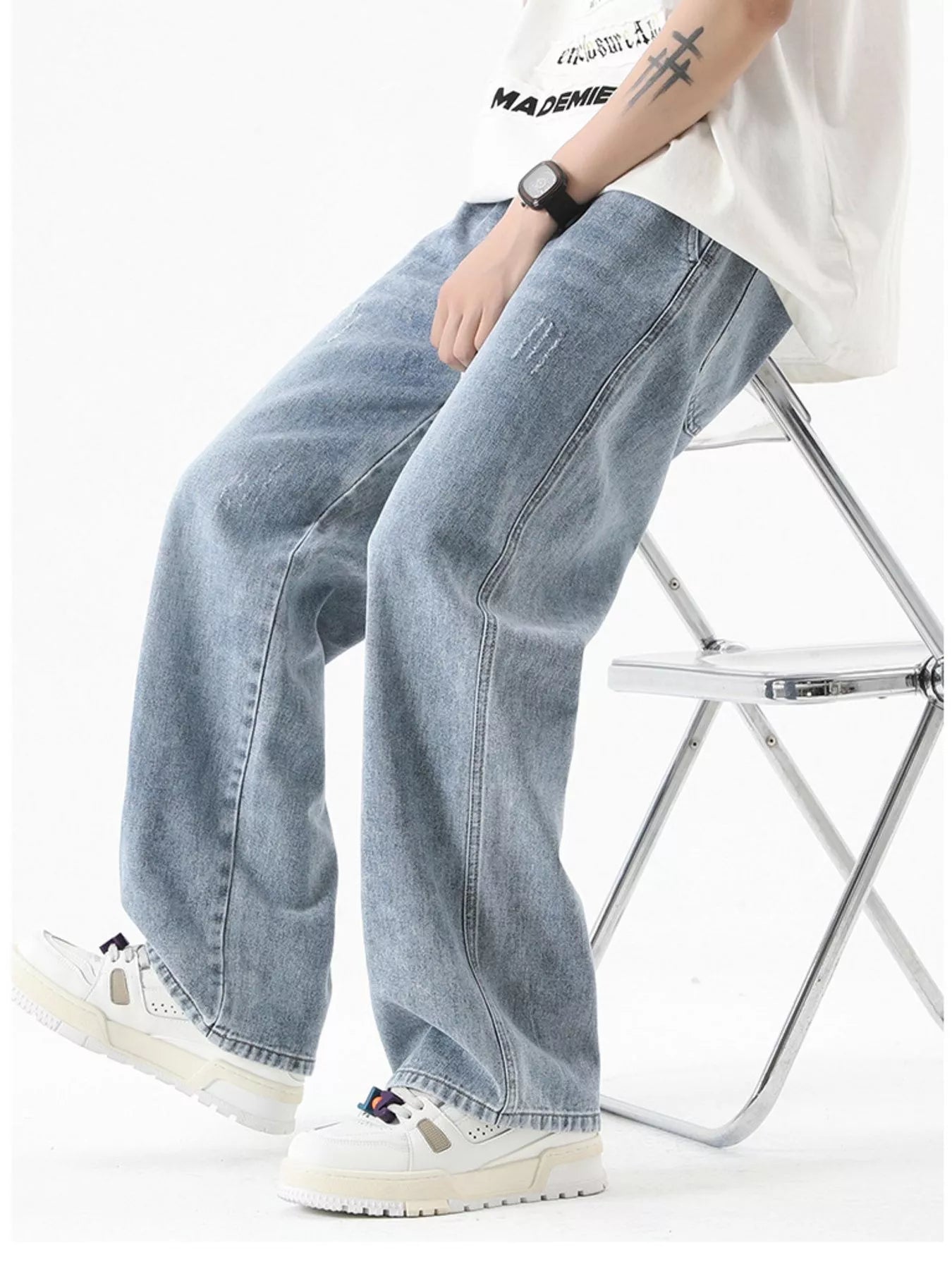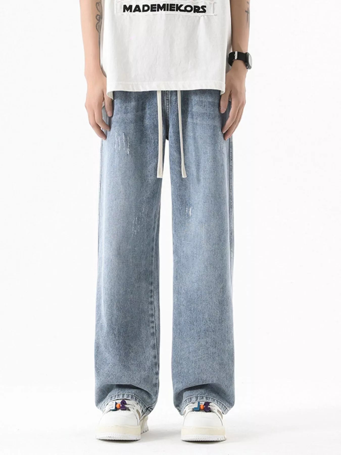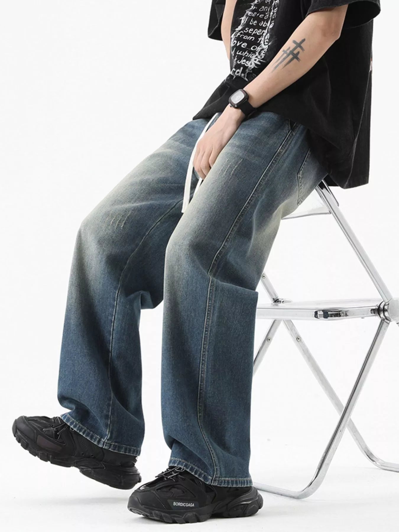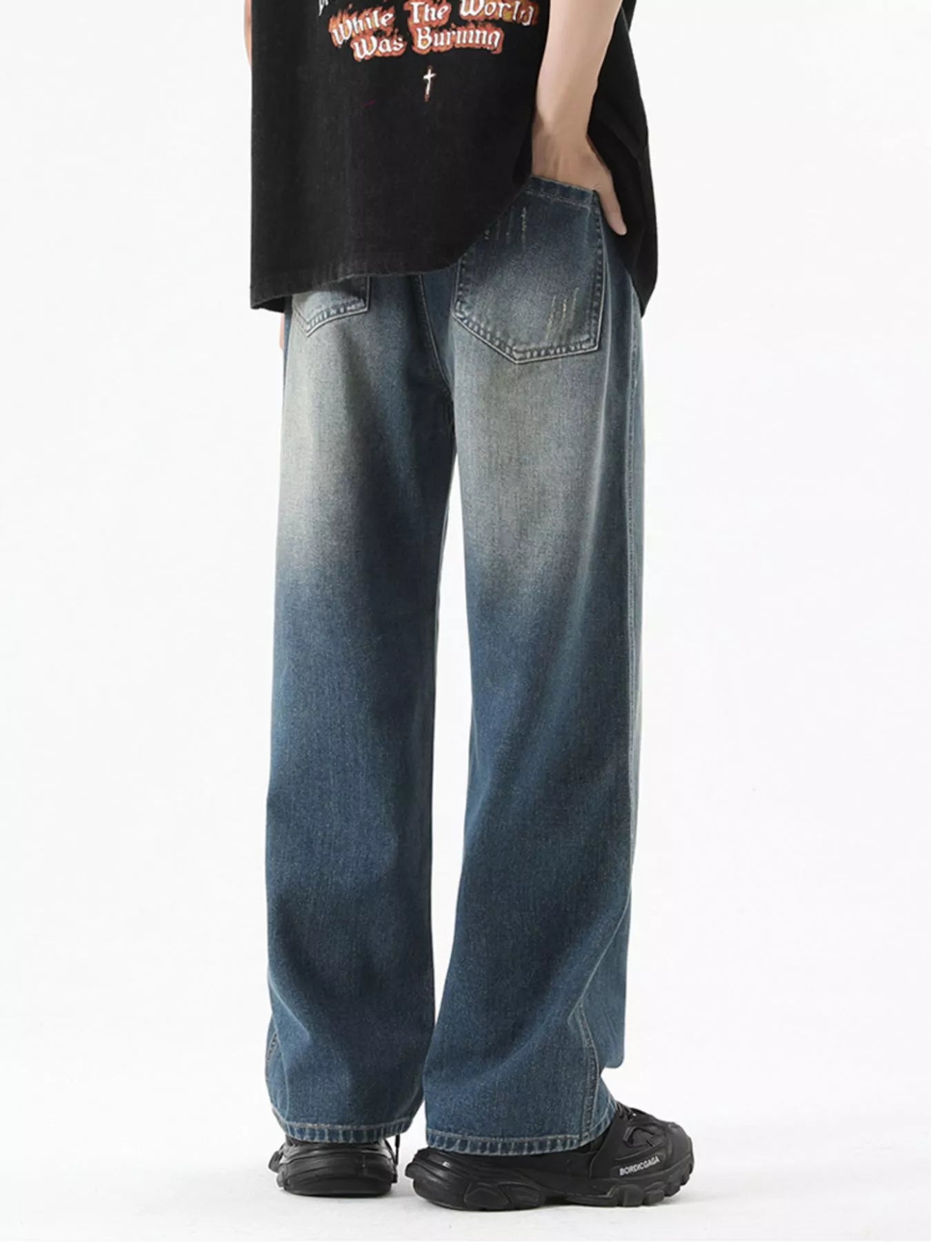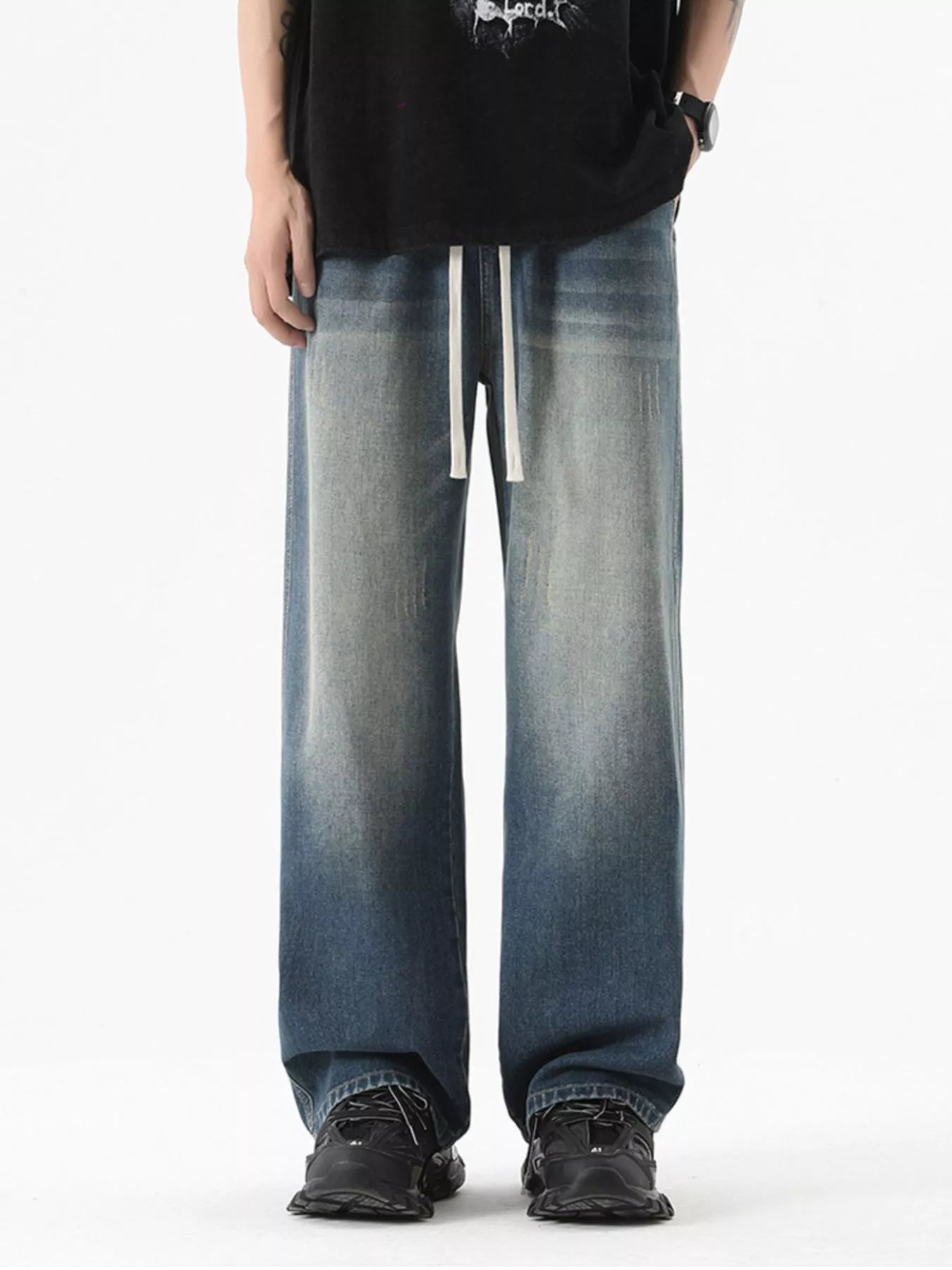 Men’s Vintage‑Wash Wide‑Leg Jeans Plus Size