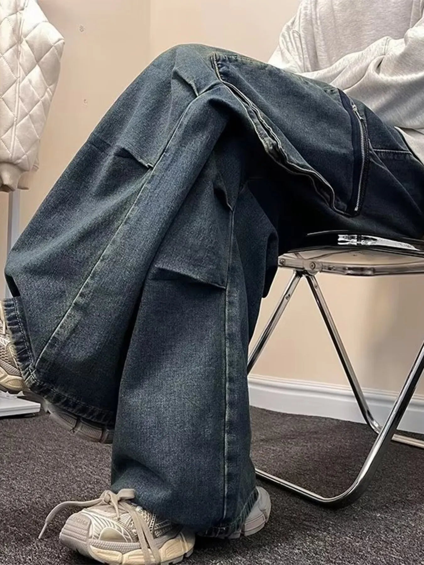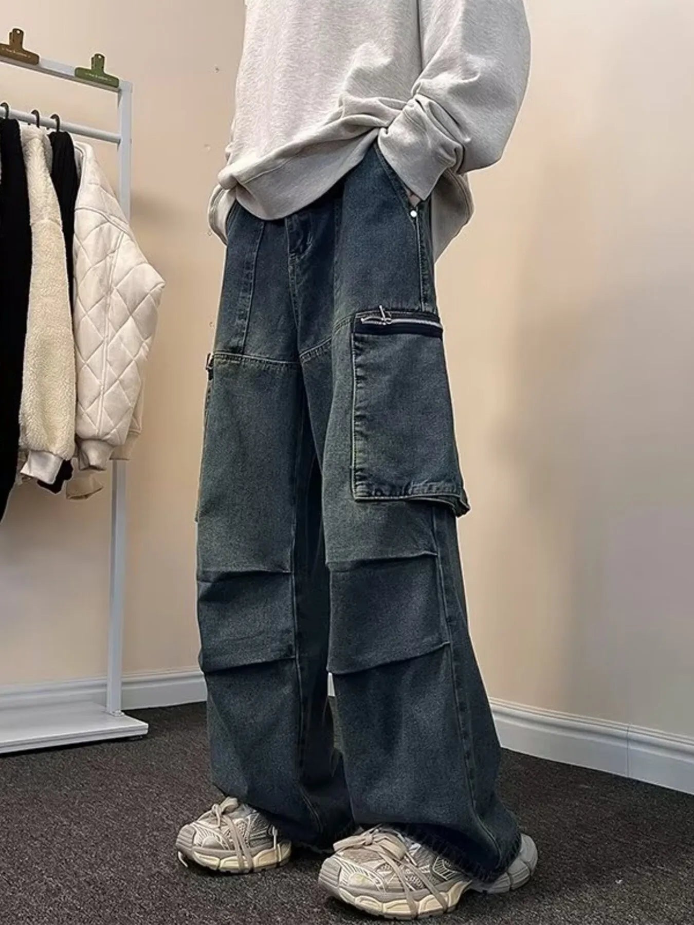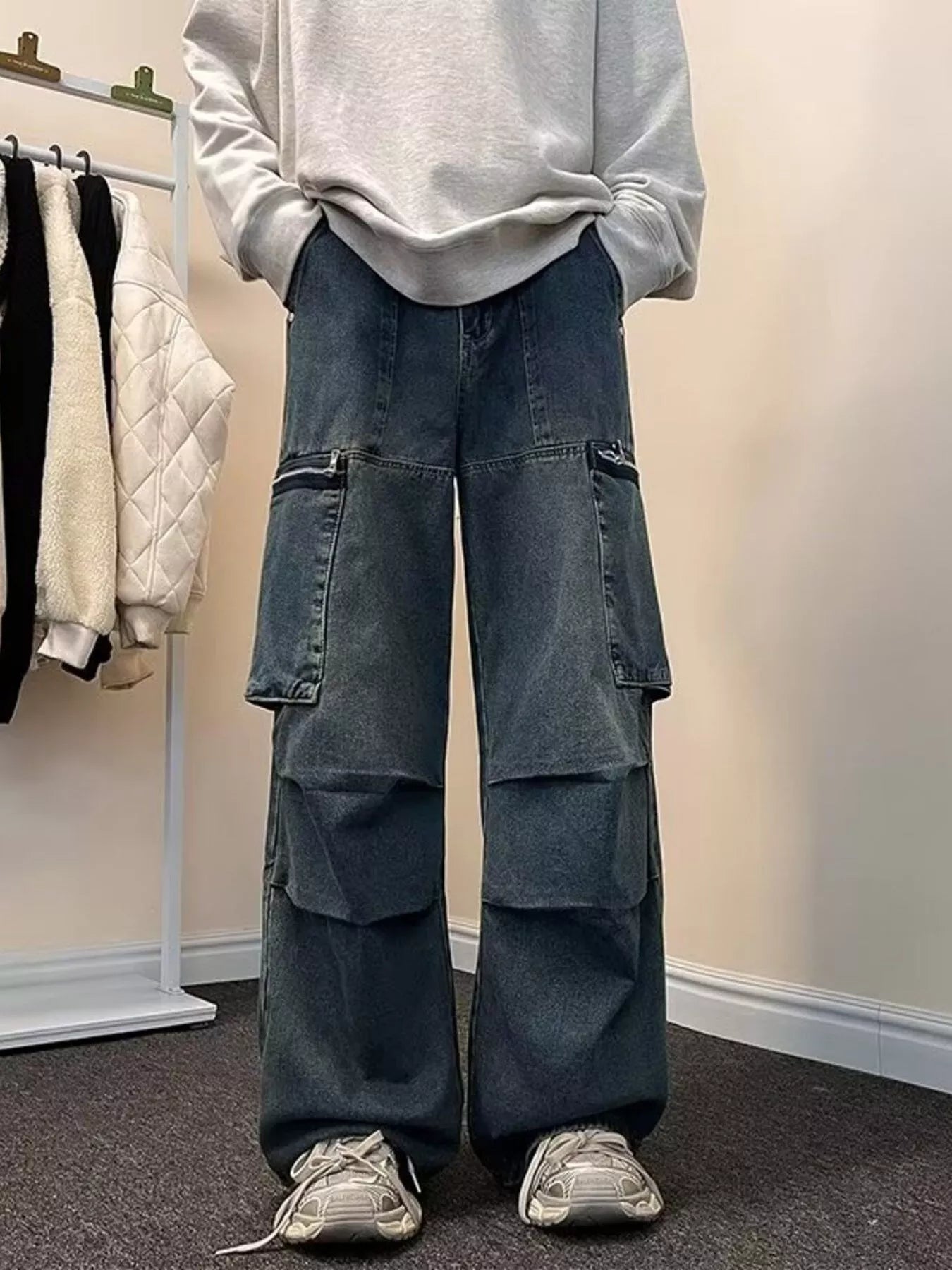 Upgrade your casual wardrobe with these full-size wide-leg cargo jeans — designed to deliver a relaxed, contemporary silhouette with functional style. The roomy fit and durable denim make them perfect for everyday wear, while the cargo pockets and washed finish add a streetwear-ready, utilitarian edge. Whether you're heading out for errands, hanging out with friends, or going for a laid-back evening look, these jeans combine comfort and versatility in one go. Their design fits broader frames comfortably, offering big & tall sizing without sacrificing style.