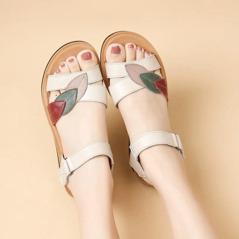 Feel secure and stylish with these orthopaedic slingback sandals, designed for women who want both comfort and chic. The split leather upper, adjustable hook-and-loop strap, and cushioned footbed offer superb foot support—ideal for those with wider feet or who suffer foot fatigue. The slight wedge heel adds a gentle lift while still maintaining stability. Perfect for summer strolls, errands, or casual wear, these “mom / granny” sandals blend classic design with practical comfort.
