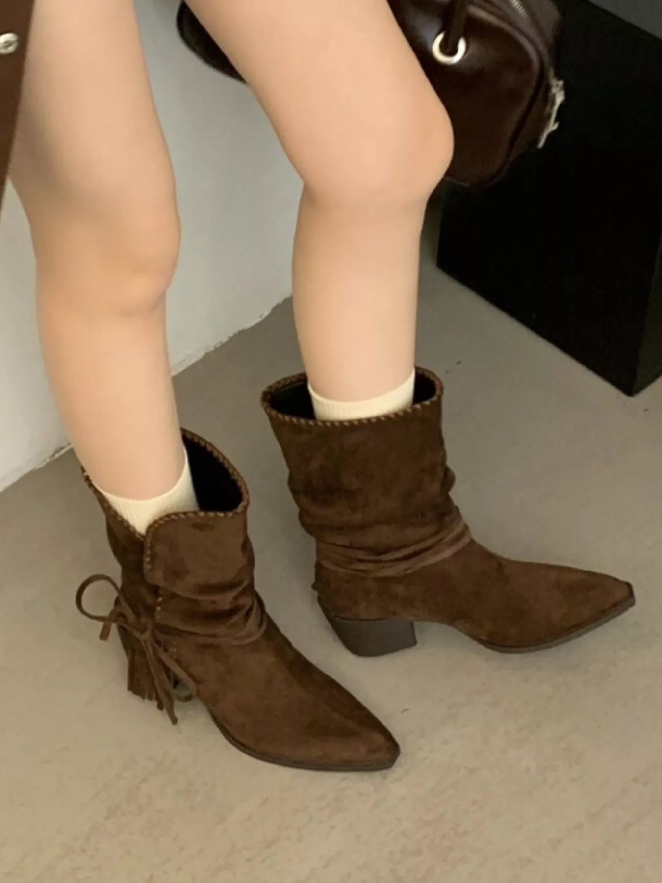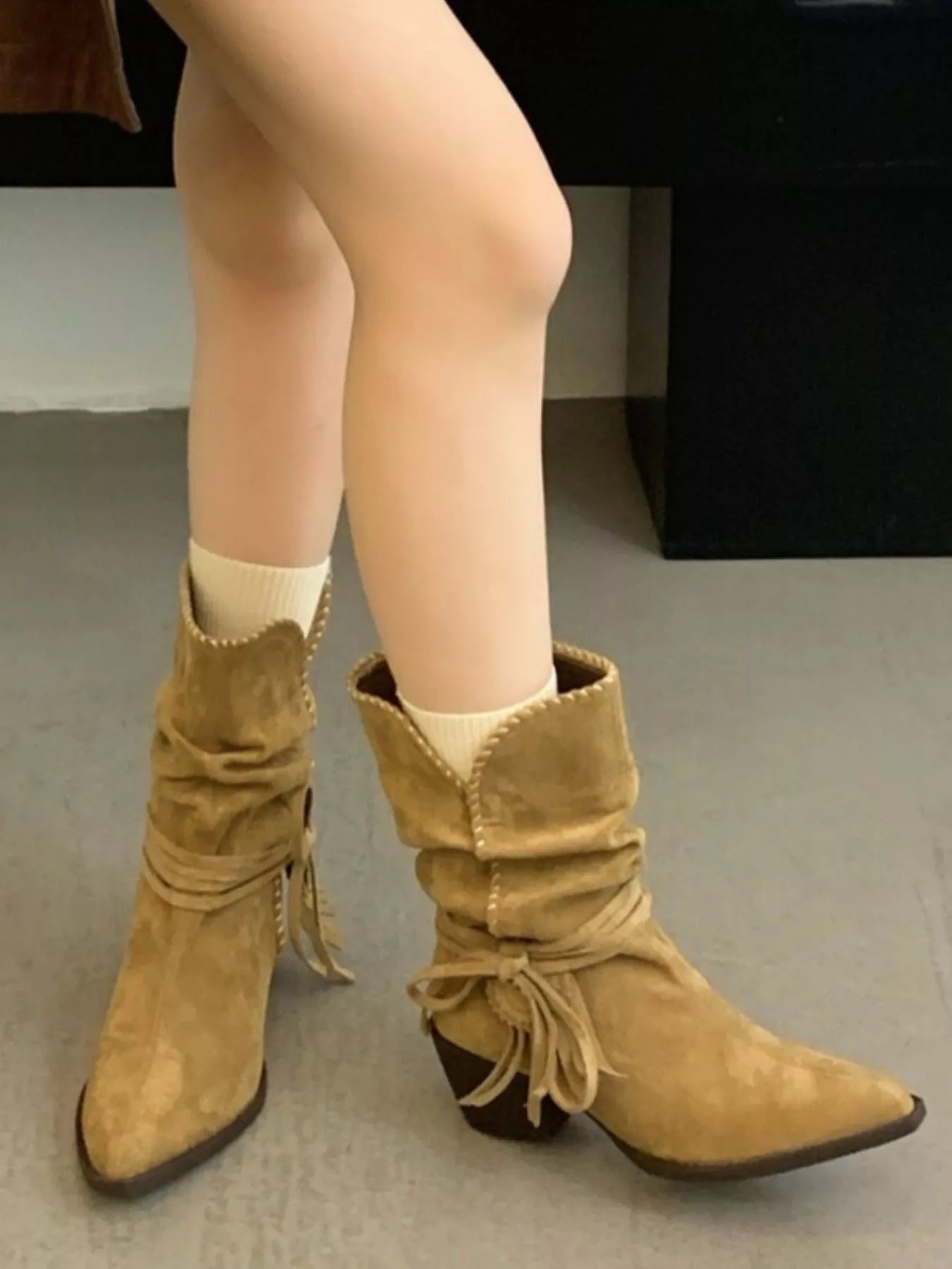 Elevate Your Style with Our Pointed Toe Block Heels Boots
