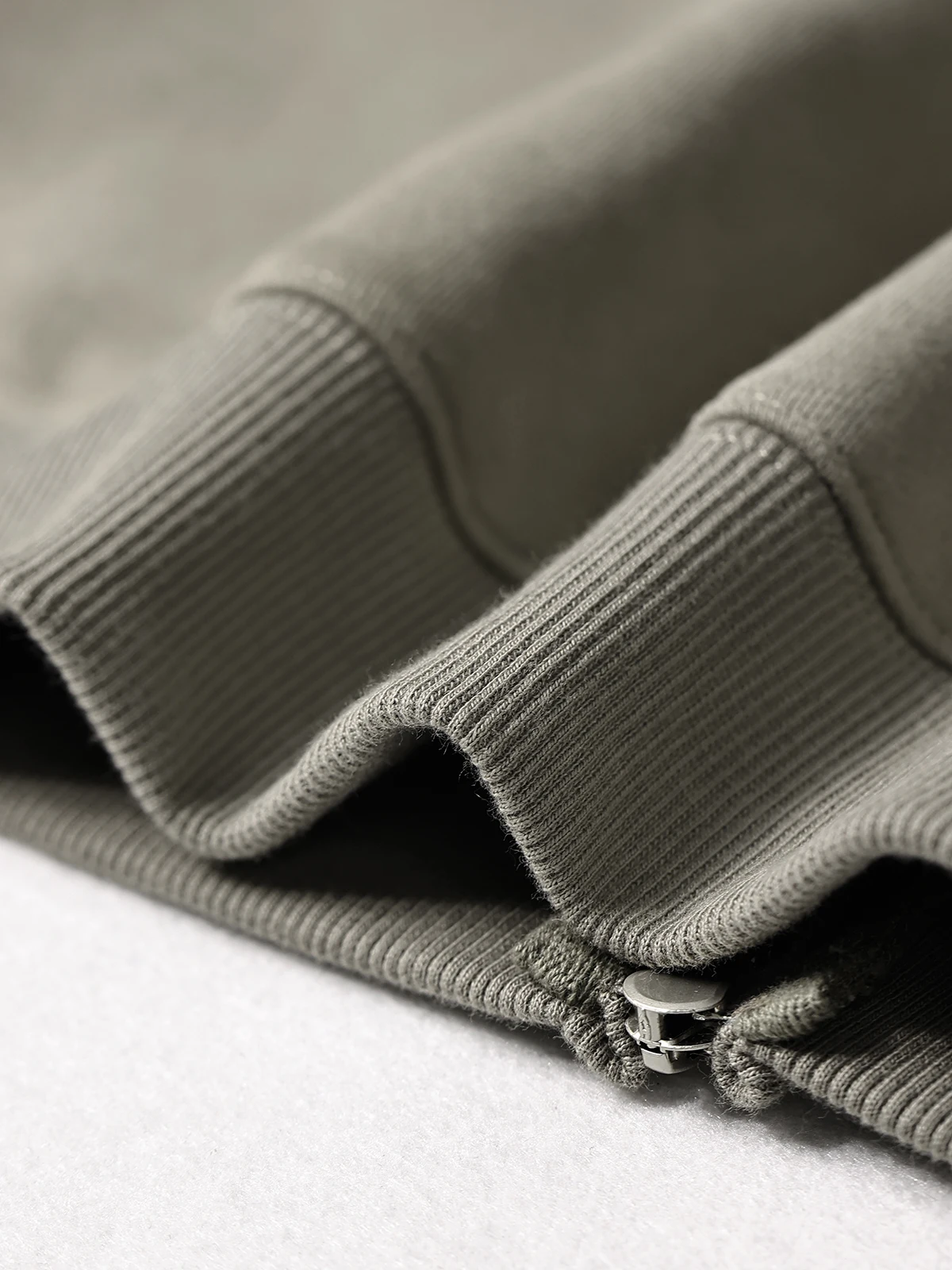 Warmth without bulk: The heavyweight fleece fabric provides insulation and comfort while maintaining a sleek, street‑ready profile.