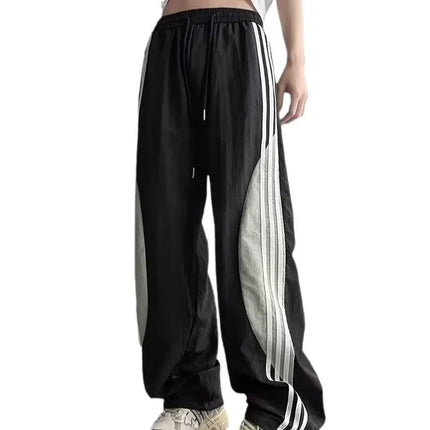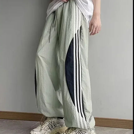 Quick-Dry Color-Block Straight Pants – Men’s 3-Stripe Loose-Fit Summer Trousers
