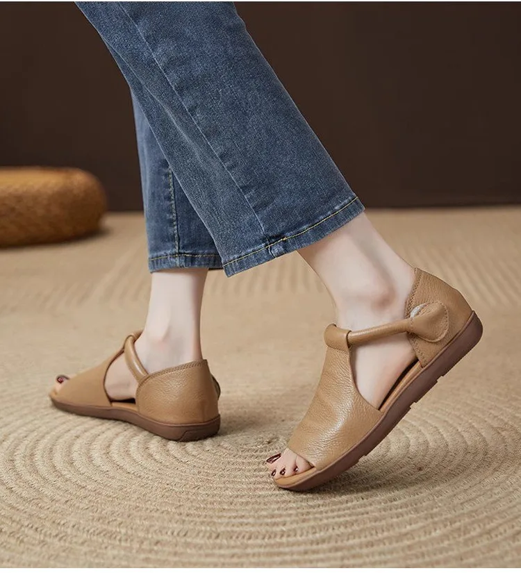 Step into timeless comfort with these retro fish-mouth flat sandals, designed for effortless summer elegance. Crafted from soft, breathable materials with a flexible sole, they keep your feet cool and supported all day long. The open fish-mouth toe design adds a vintage flair while providing extra ventilation. Lightweight, stylish, and versatile — perfect for beach days, casual strolls, or relaxed everyday outfits.