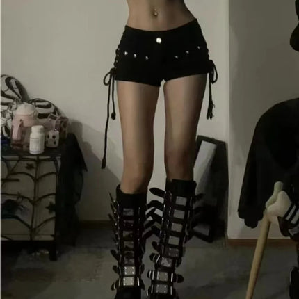 Rock Retro Vibes in Sexy Lace-Up Skinny Shorts