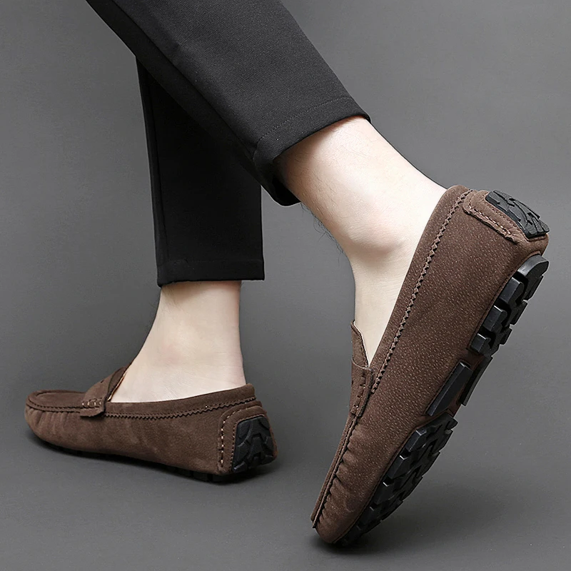 Discover a perfect blend of elegance and ease with these soft suede & leather slip-on loafers. Designed for the man who walks a lot but still wants to look sharp, these shoes combine supple suede uppers with leather accents for durability and form. The moccasin construction and flexible soles allow for natural movement, while the slip-on design ensures hassle-free wear. Ideal for daily commuting, casual smart dress, or light outdoor strolls — these loafers adapt to your pace.
