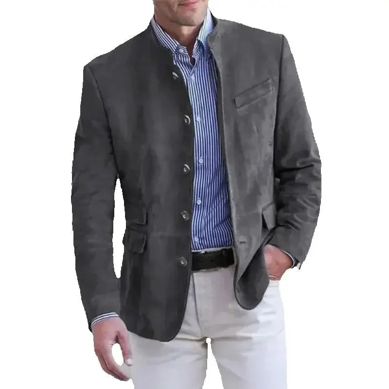 Elevate your autumn wardrobe with this slim-fit long-sleeve suit jacket: solid colour, stand collar, and streetwear polish all in one. With its sharp cut and buttoned front, it gives you a tailored look that works equally well for casual outings or smarter nights. Offered in rich colours like Dark Grey, Blue, and Khaki, and sizes from S up to XXXL, you’ll find both style and fit in this coat.