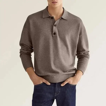 Solid Long Sleeve Men's Polo Shirt – Slim Fit Button Neck Pullover