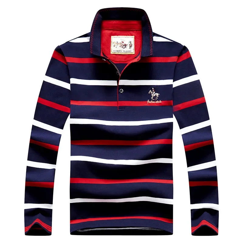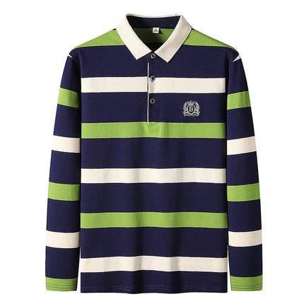 Upgrade your rotation with this Classic Cotton Embroidered Stripe Polo—where business casual meets relaxed style. Crafted from breathable cotton, it features a refined embroidered emblem and clean striped pattern that strikes just the right balance between formal and laid-back. The long sleeves and structured polo collar make it ideal for cooler seasons or air-conditioned spaces, while multiple colourways let you find the perfect match for your wardrobe. Designed for sizes up to 4XL, you can step out confidently knowing you look sharp and feel great.