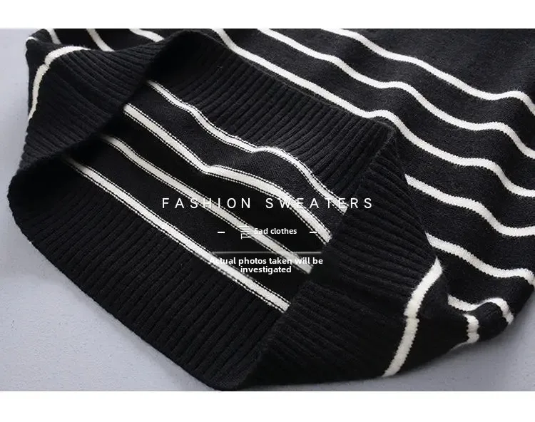 Step up your winter wardrobe with this striped zipper-top sweater—where comfort meets edge. Designed with a high neckline zip, long sleeves, and a loose knit fit, it offers warmth and relaxed style without bulk. Perfect for layering or wearing solo, this piece blends bold stripes with functional design so you stay cozy through autumn and into winter.