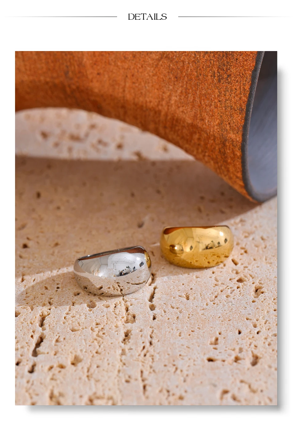 This textured thick band ring combines classic minimalism with modern durability. Crafted from high-grade stainless steel and finished with a real 18K PVD gold plating, it delivers both style and longevity. Its smooth yet detailed texture gives a refined appearance, whether worn daily or for special occasions. Hypoallergenic and resistant to water, sweat and everyday wear, it’s the ideal choice for those seeking elegance without compromise. A perfect gift or personal staple that stands out subtly.