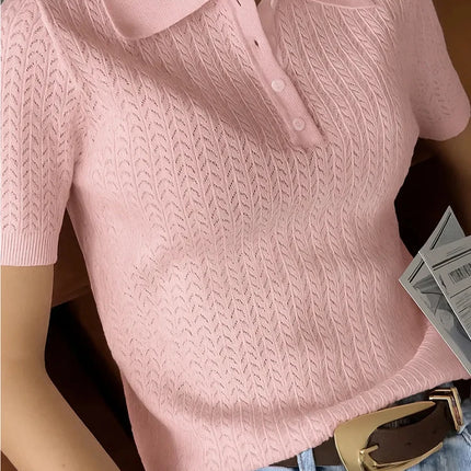 Tornova Loose Knit Polo Tee – Summer Casual Women's Top