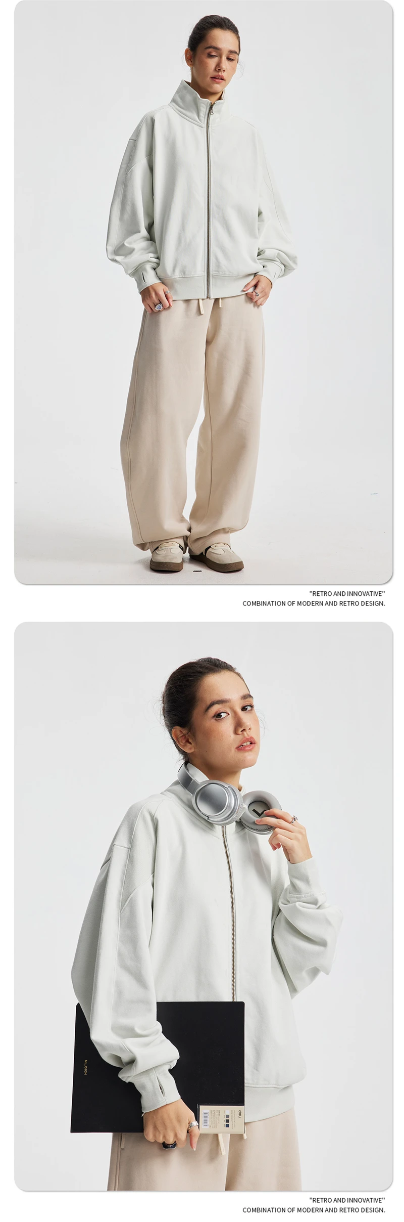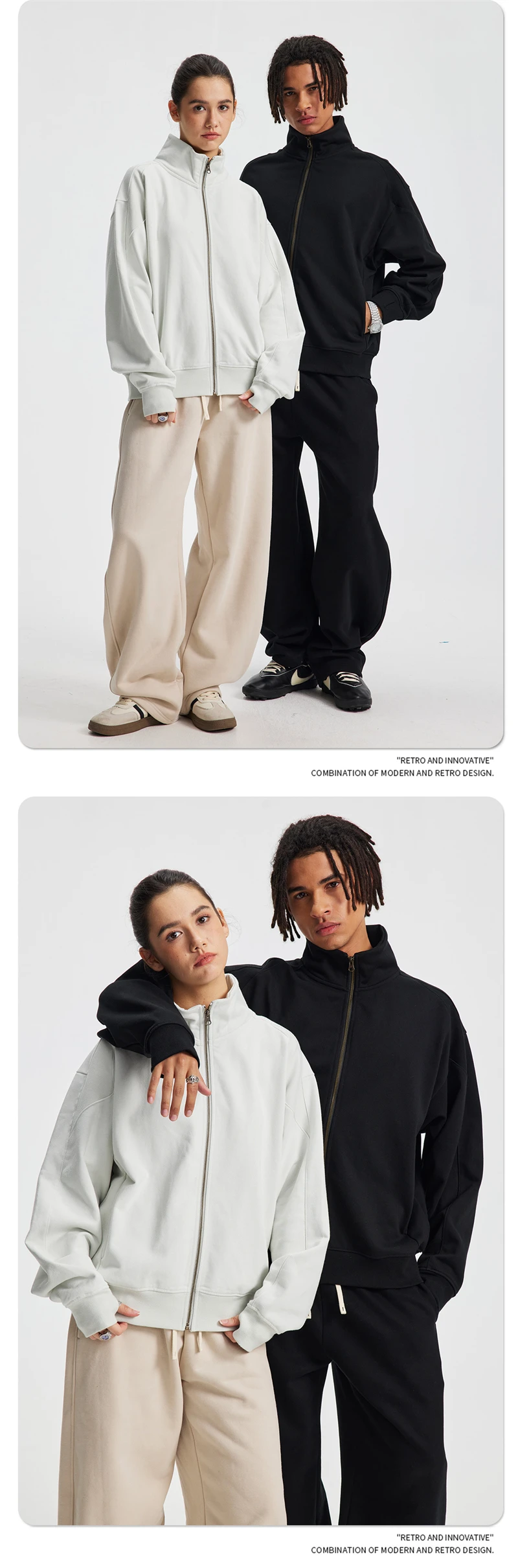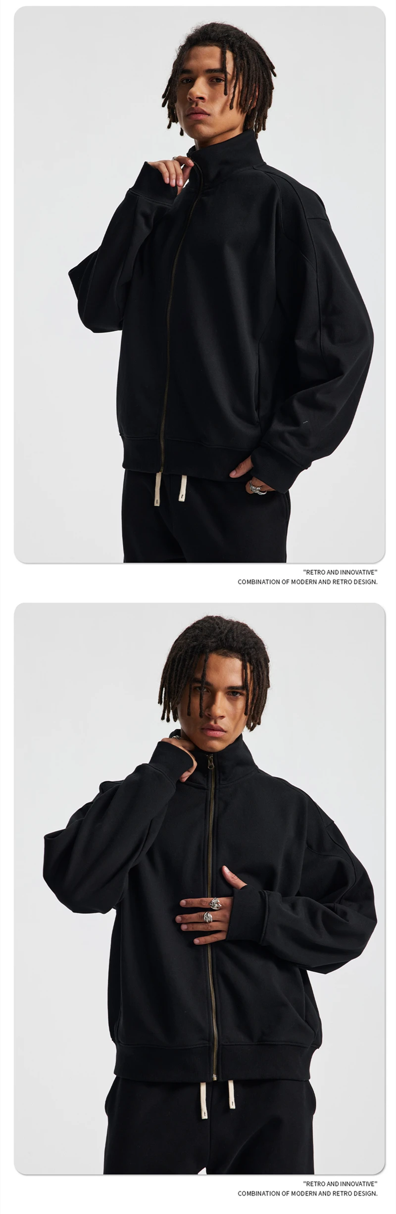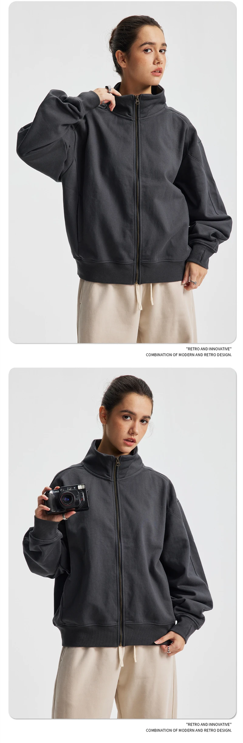 Modern streetwear styling with functional design: The stand collar and full zip front give outerwear appeal, while relaxed unisex fit ensures comfort and versatility.