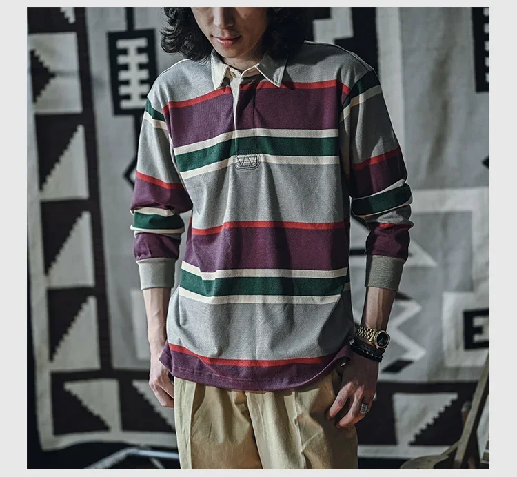 Step into preppy style with this Vintage Campus Striped Polo Shirt—the perfect fusion of Ivy League tradition and streetwear edge. With bold horizontal stripes and a crisp button-down polo collar, this long-sleeve tee brings a vintage campus vibe to your casual wardrobe. Cut for comfort with a relaxed fit, it’s ideal for layering or standout solo wear. Crafted from soft knit fabric, it offers both durability and a flattering silhouette for everyday use.