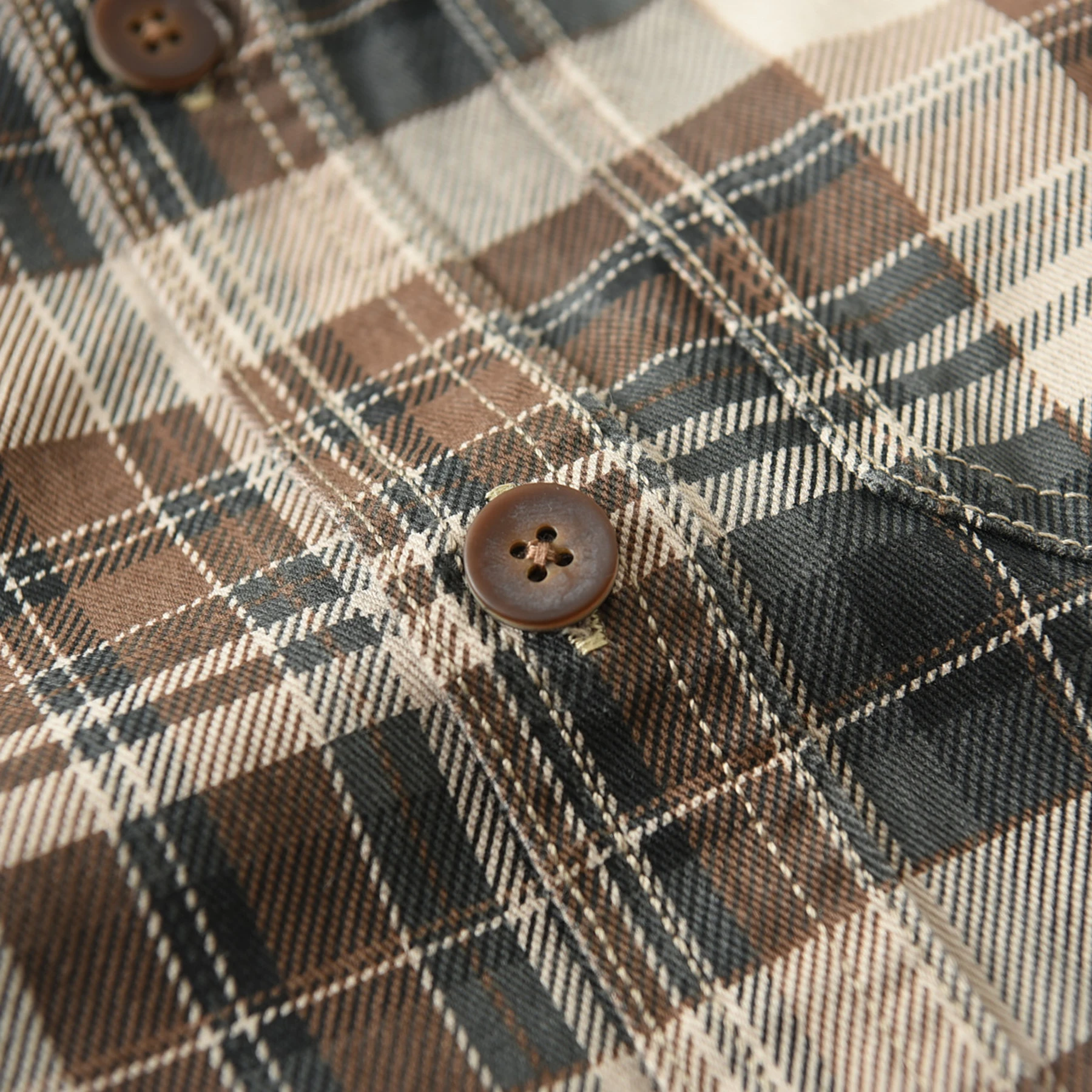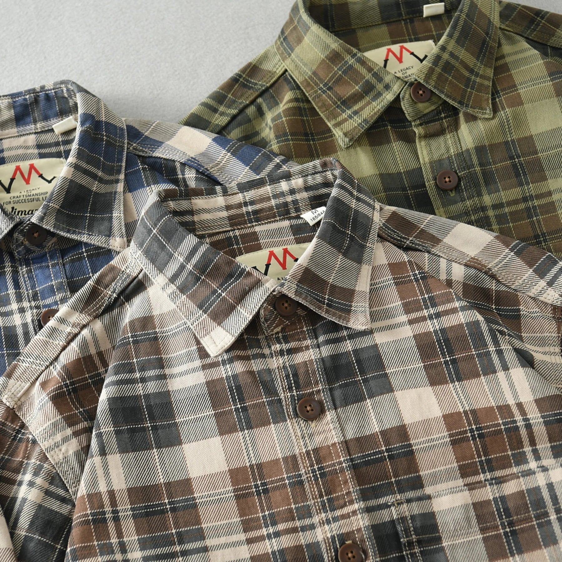 Vintage Wash Plaid Long-Sleeve Shirt Men Cotton Flannel Casual Jacket