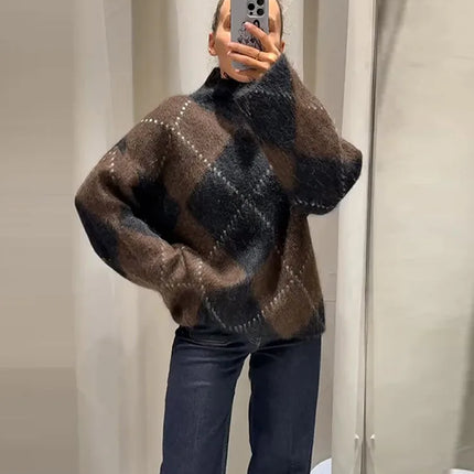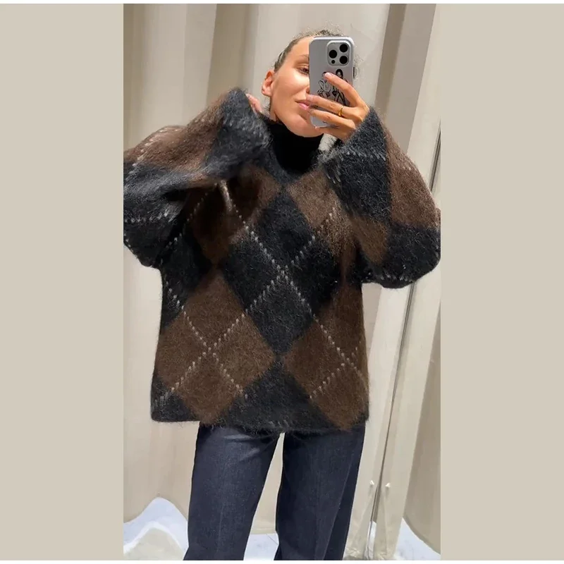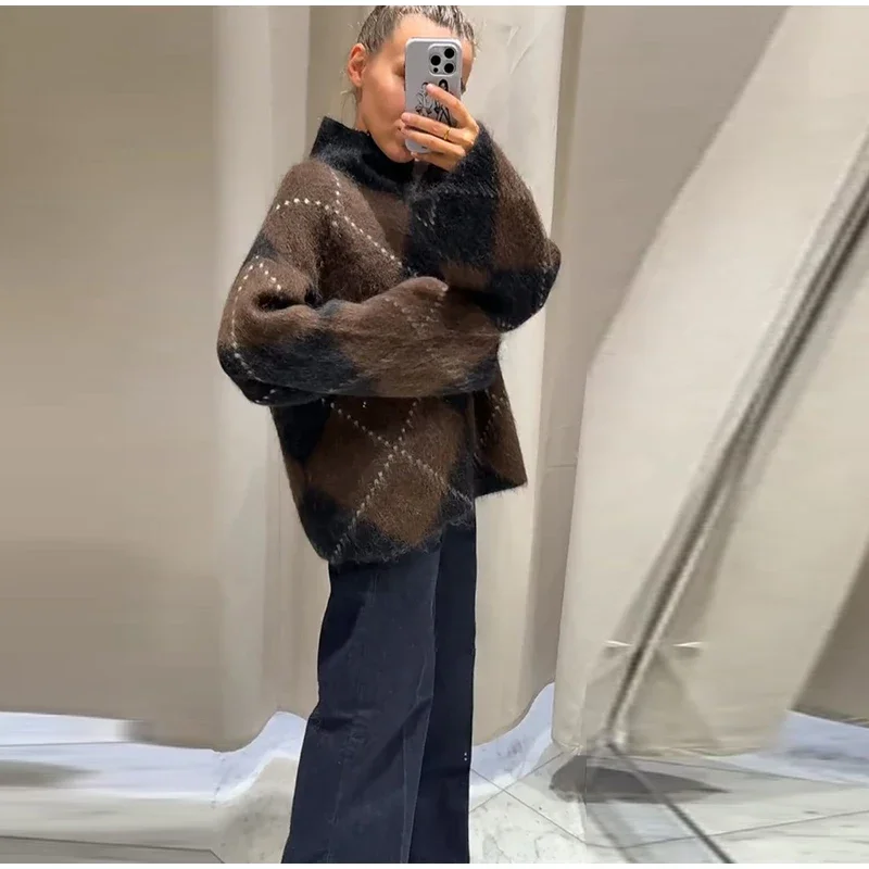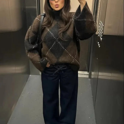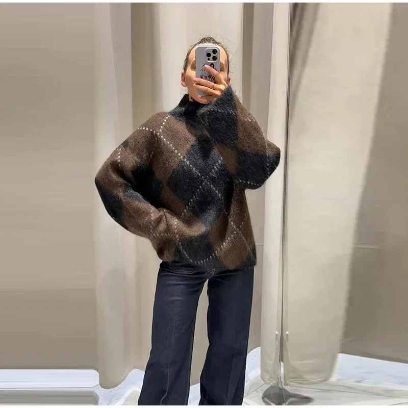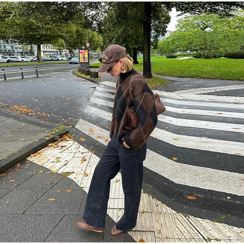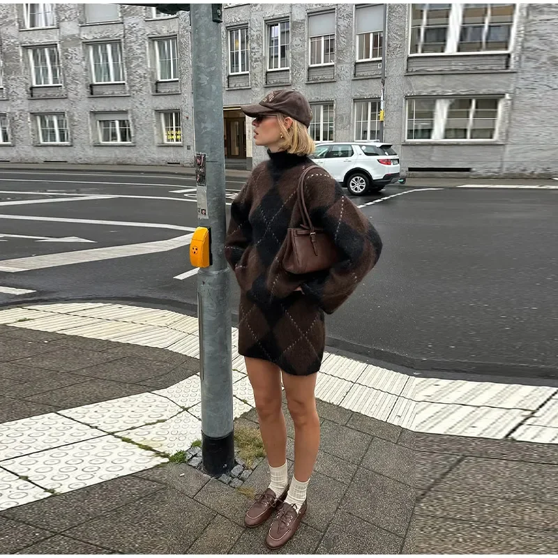 Upgrade your seasonal style with this chic two-piece knit set: a cozy turtleneck sweater with drop-shoulder long sleeves paired with a high-waisted argyle-pattern knit skirt. Designed to deliver comfort and street-style appeal, this outfit moves effortlessly from casual outings to cosy lounge days. With modern preppy charm and a flattering silhouette, it’s the ultimate pick for fashion-forward women aiming for comfort that looks polished in the colder months.