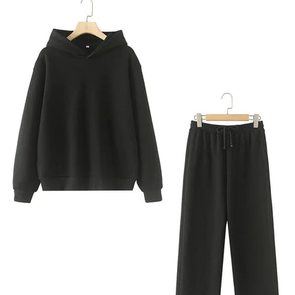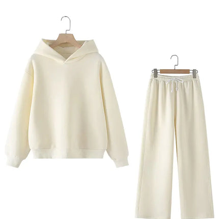 Meet your new go-to for laid-back style: a soft pullover hoodie paired with relaxed straight-leg pants—perfect from desk to sofa. Made from plush knit material with a flowing drape, this set delivers comforting warmth without bulk. The versatile hooded pullover layers beautifully under coats, while the elastic-waist pants offer easy all-day wear. Whether lounging, working, or stepping out, this set blends polished coziness with effortless flexibility.